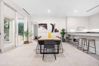 This secure and private sandstone residence is as solid as it is tranquil. Generously proportioned bedrooms and spacious living areas are cocooned in a verdant garden setting. The modern kitchen is equipped with Miele and Smeg appliances and flows through to a large north-facing courtyard.
