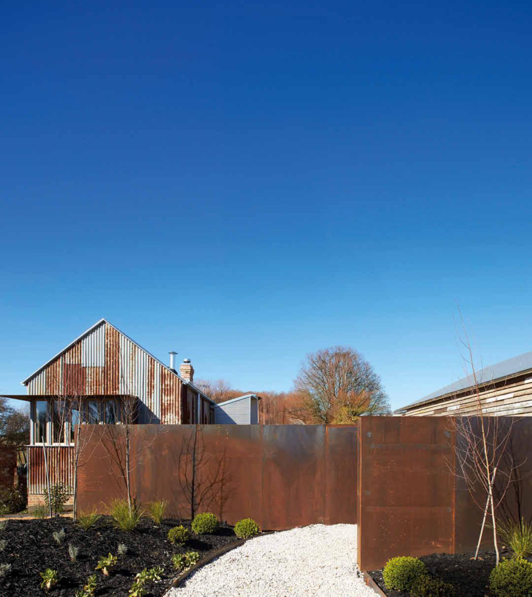 There’s space for an outdoor lounge to the left and a separate seating area to the right of the house’s front entrance.