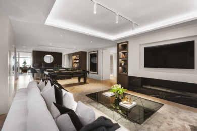 You are greeted by a soaring 6 metre double height void, two living zones, four bedrooms including a master suite like no other with retreat and sauna, �ive bathrooms and a palatial six car garage. Curated with care this is one of the few prestigious Saint Moritz residences facing the shimmering bay.