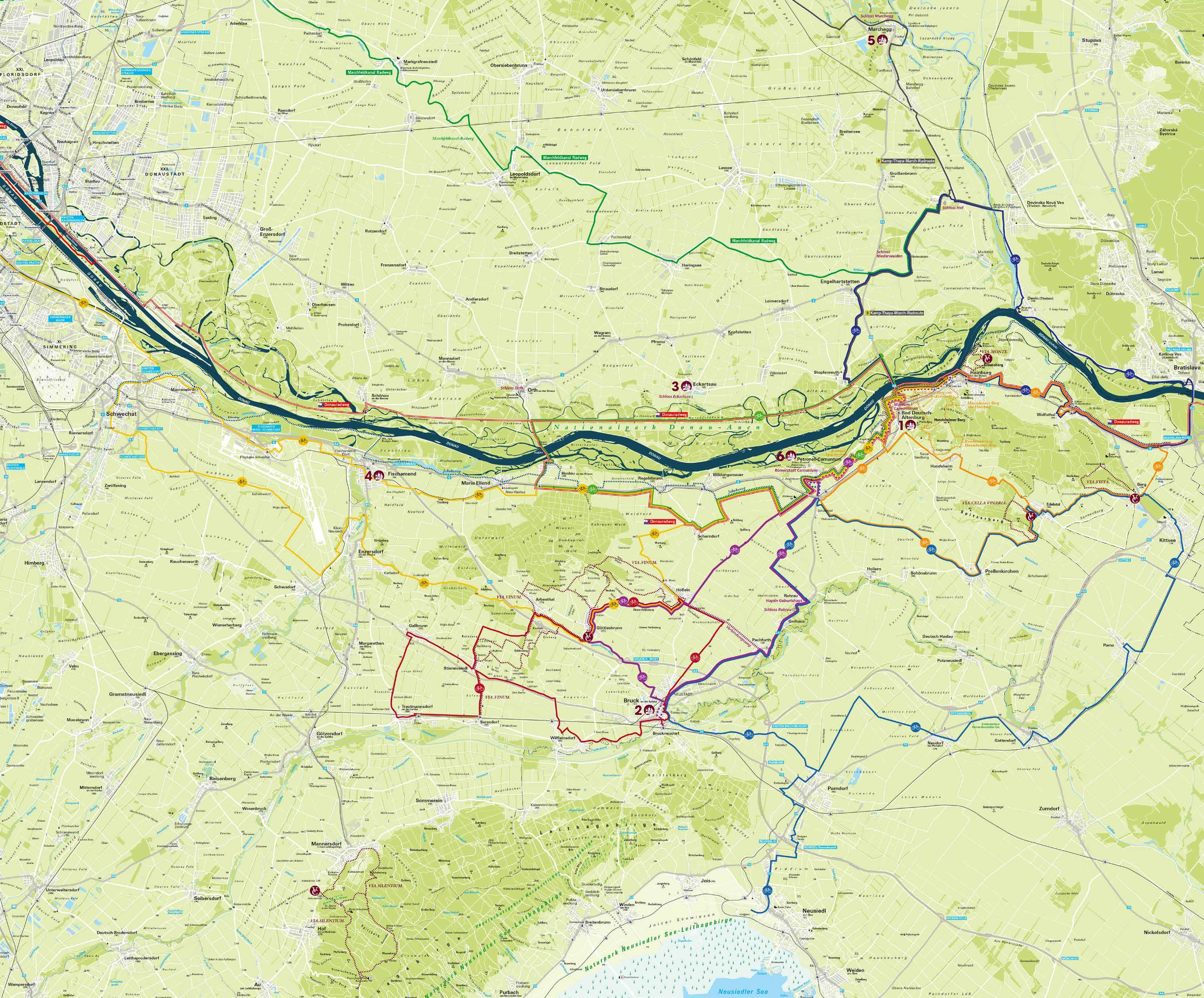 Die landschaftlich attraktiven Rad- und Wanderrouten sind durchgehend markiert, verfügen über gut ausgebaute Rastplätze, Infotafeln und Erlebnispunkte und führen zu den Top-Ausflugszielen der Region.