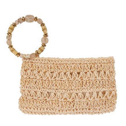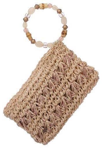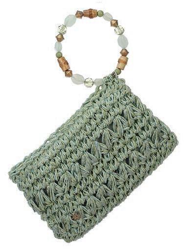Hand Crocheted Toyo Clutch with Beaded Wristlet Shell, Inner Zip Pocket, Zip Closure