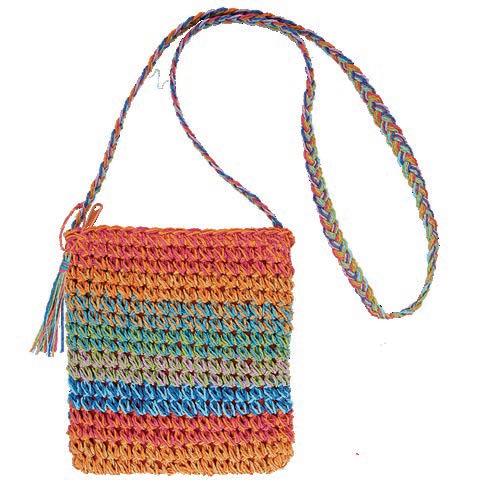 Hand Crotcheted Toyo and Polyester Cross Body with Crotchted Handles | Inner Zip