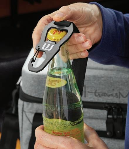 • Detachable shoulder strap with attached TM logoed bottle opener