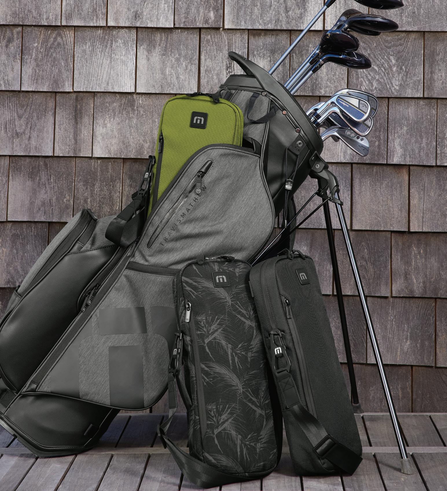 • Molded top panel with interior storage and heat transfer TravisMathew logo
