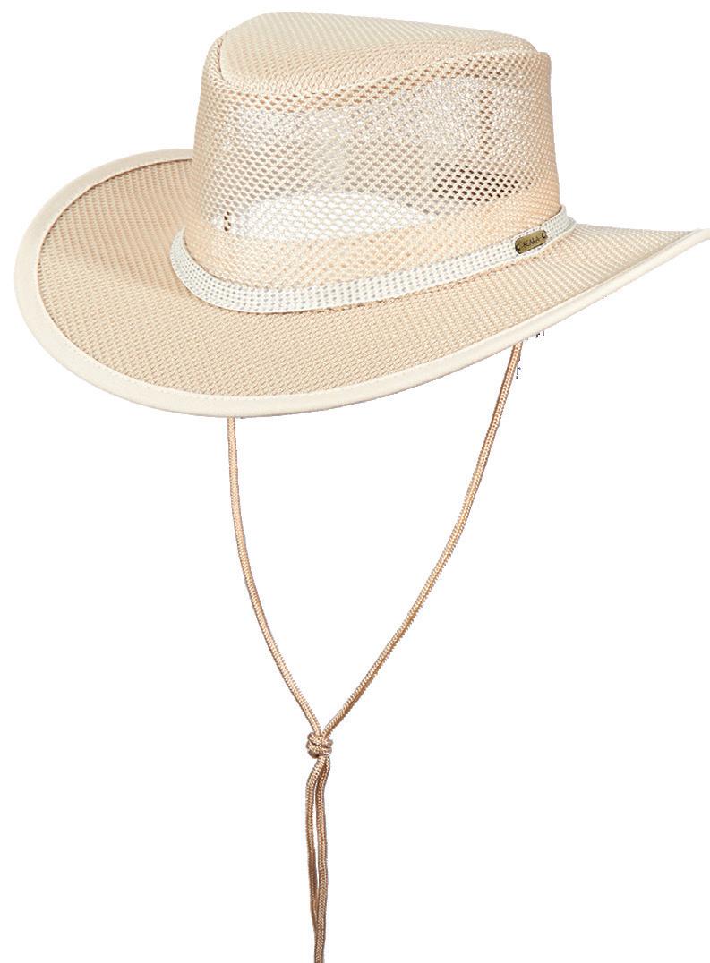 Simply soak these hats under water and they will keep your head and body cool for hours.
