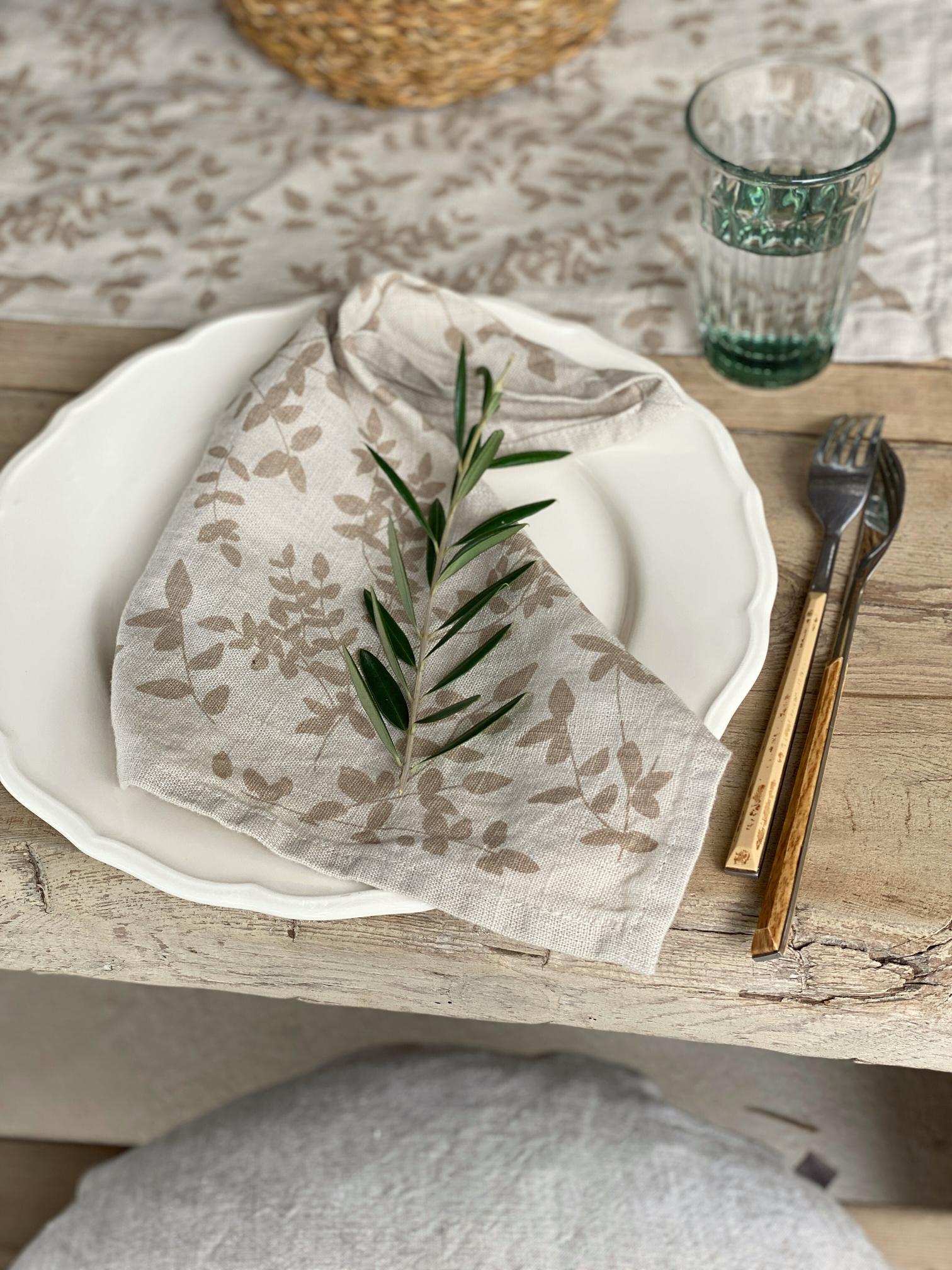 Eat outside, feel the warmth and live with natureenjoy this beautiful attitude to life with highquality textiles made from natural, pure linen Printedwithcareandbyhandinourstudio.