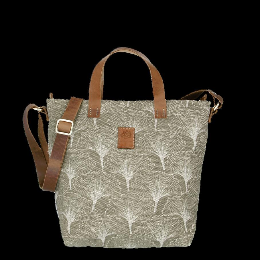 100% robust burlap, hand-printed Lining 100% linen, inside pockets, leather straps