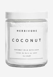Coconut Milk Bath Soak from Herbivore Botanicals bathes skin in hydrating coconut milk while creating a calming bathing experience with relaxing vanilla. Coconut milk powder moisturizes and softens the skin, and vanilla helps to deliver a relaxing and calming effect on the brain, while coconut pulp CO2 hydrates skin, imparting a tantalizing coconut scent.