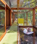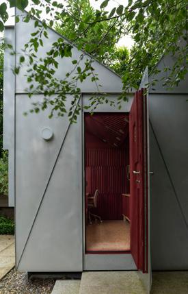 COVID has also encouraged some people to spend more time outdoors: dining, exercising, or simply enjoying the open air. Two other cabins—designed to allow the individual to decide the purpose (a retreat, a teahouse, or anything in between)—demonstrate how buildings can facilitate communing with nature.