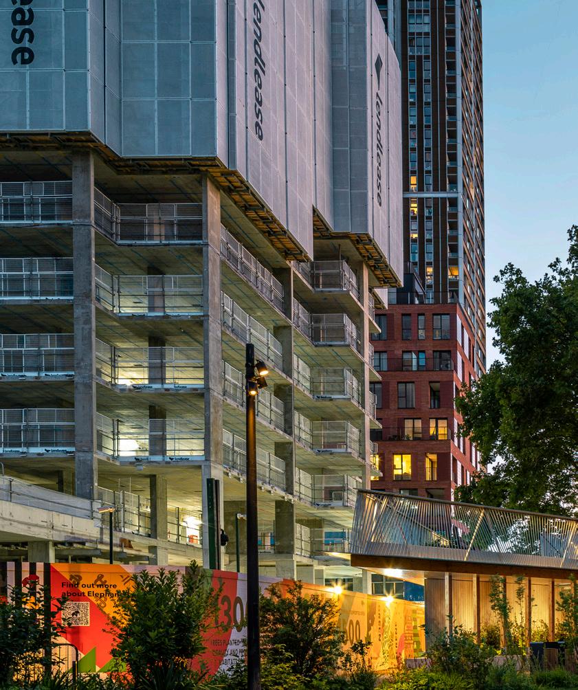 The two-acre Elephant Park in London, England, is part of a £2.3-billion regeneration scheme to create 3,000 new homes and new public green spaces in south London.