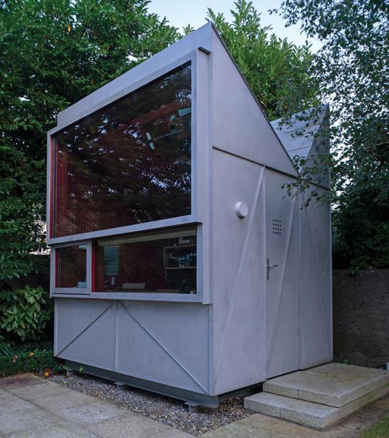 Another enclosed writing space, The Writer’s Room, sits in a corner of the back garden of a house on Alma Road in Dublin. According to Clancy Moore Architects, the author “needed seclusion, to be able to work without being seen, and yet to feel connected with the house.”