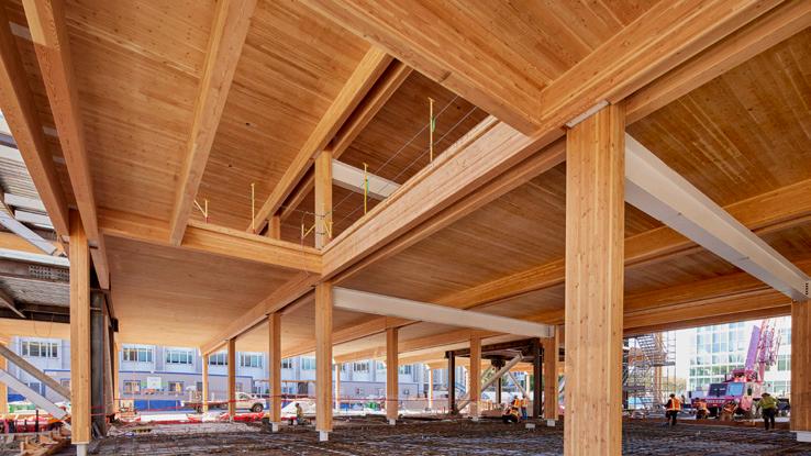Construction of Skidmore, Owings & Merrill’s new San Mateo County Civic Center is underway in Redwood City. The fivestory, 208,000-sq.ft. building is expected to house roughly 600 government employees. The mass timber design will feature all wood columns, beams, walls, and ceilings. Completion is expected in late 2023.