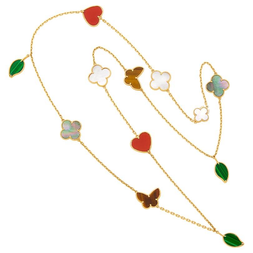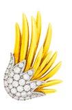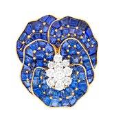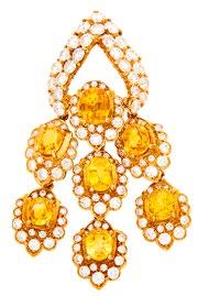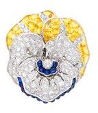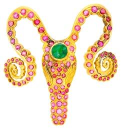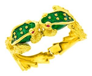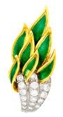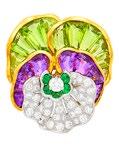 18 kt., 2 round diamonds ap. .40 ct., 74 round diamonds ap. 2.60 cts., 10 round green garnets, fancy-shaped peridots and amethysts, with maker’s mark, no. 706303, ap. 19.5 dwts. With signed box. C