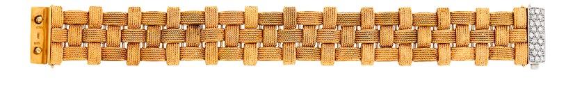 Wide Gold Bracelet No. 7651, circa 1940, ap. 70.2 dwts. Length 6 3/4 inches.