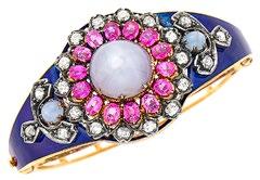 22 kt., one oval sapphire ap. 6.00 cts., 4 oval sapphires, 4 rose-cut diamonds, with maker’s mark, ap. 13 dwts. Size 6. C From a Private New York Collector