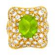 One cushion-shaped rose-cut faceted peridot ap. 4.75 cts., 66 round diamonds ap. 4.45 cts., ap. 12.3 dwts. Size 6.