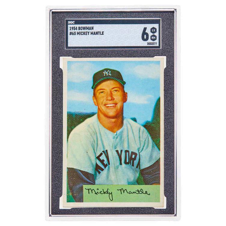 Bottom Right: Bowman Mickey Mantle #65, 1954 Est. $2,000 – 4,000 Auction Dec 5