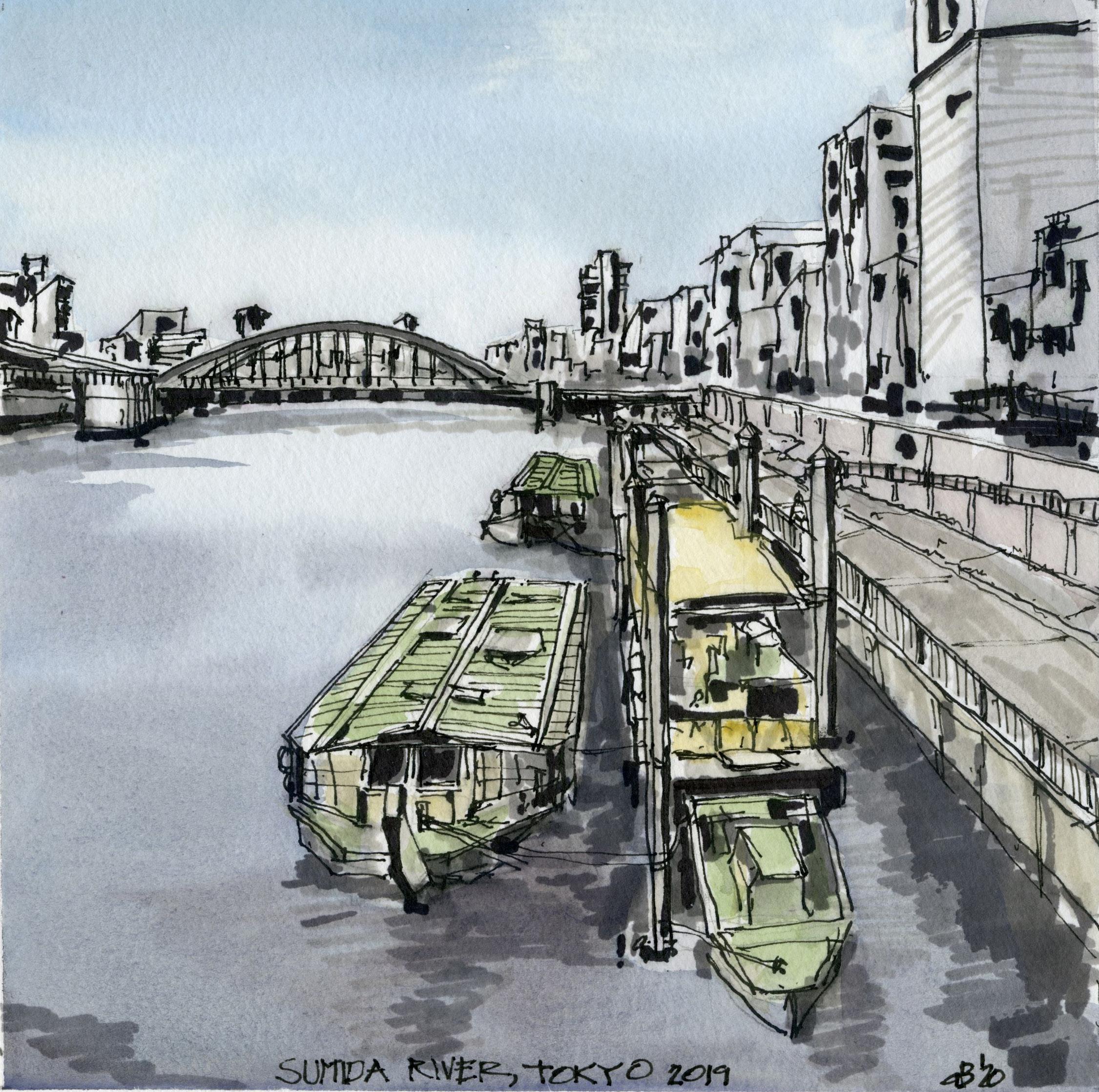“While sketching in Tokyo in 2019, a passerby gave him a USk Changsha pin, alerting him to the global reach of the urban sketching community, and he finally joined the Urban Sketchers North Bay group last fall.”