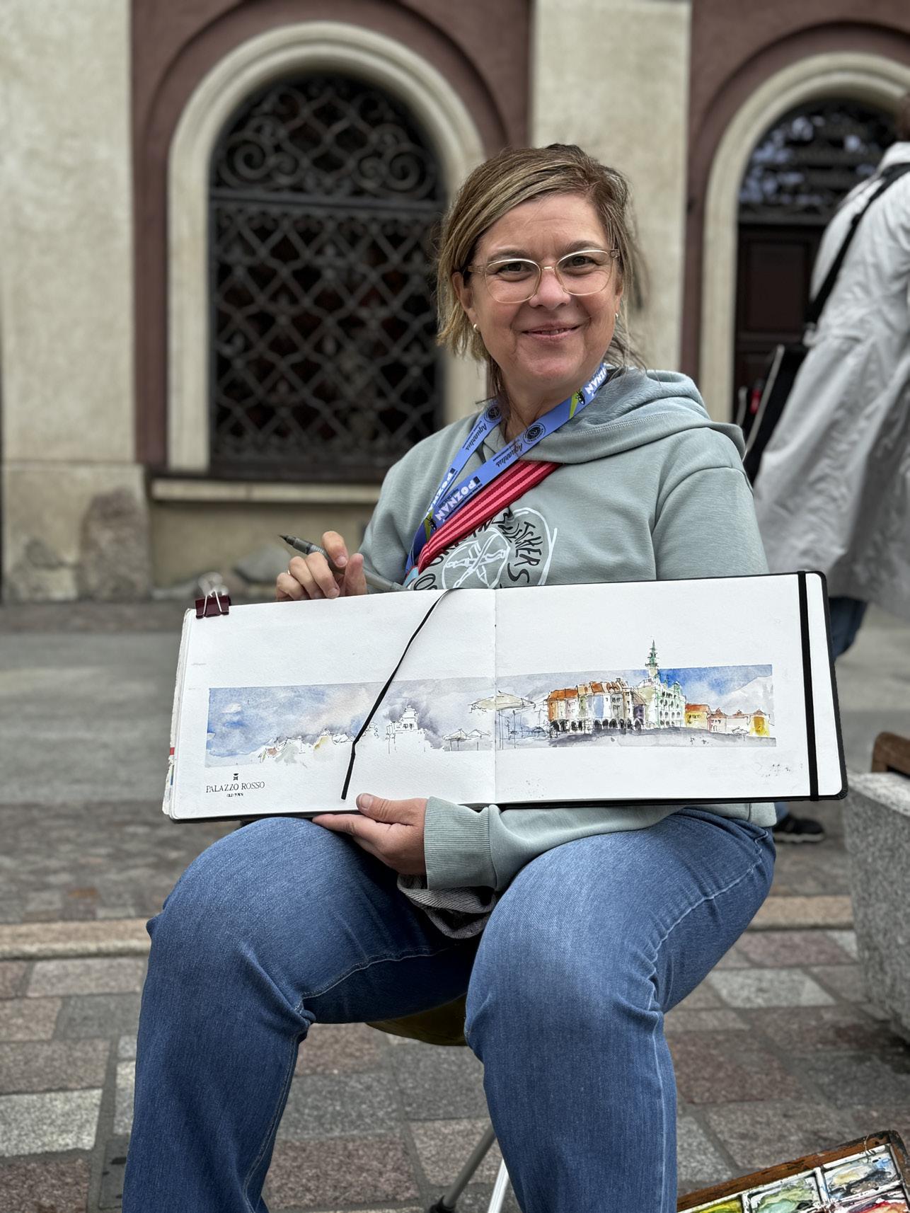 Organizing the 13th International Urban Sketchers Symposium in Poznań was both an honor and a challenge. Our Local Team: Justyna Wojnowska (Poznań), Dora Pindur, Katarzyna Kosiak, Paulina Kowalczyk and Agnieszka Michalska, together with the International Organizing Committee, worked intensively for a year and a half to make this vision possible. During the Symposium, Agnieszka coordinated a team of 49 dedicated volunteers who ensured that participants and instructors alike could always count on support, guidance, and information. We owe them a huge thank you for their energy, professionalism, and warm hospitality.