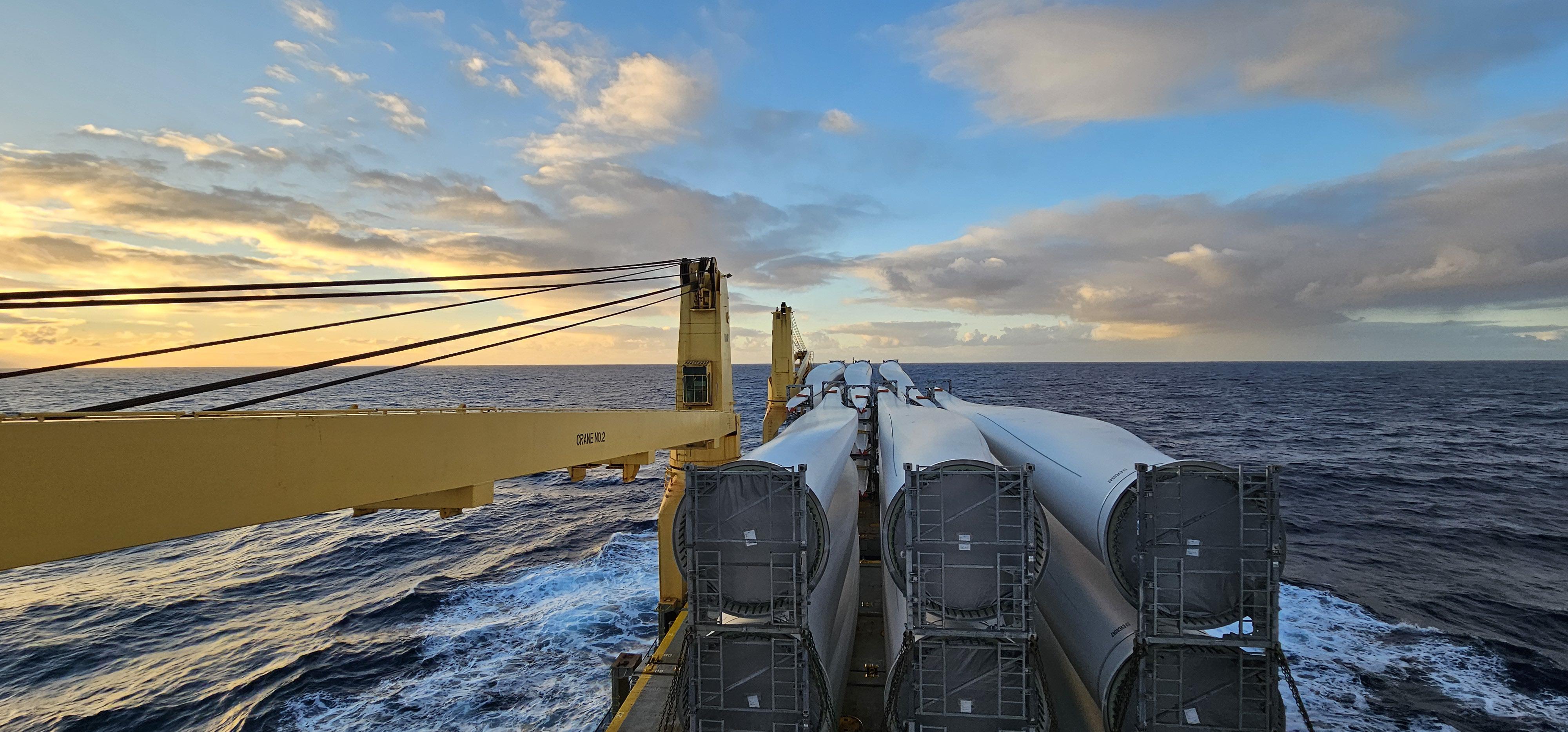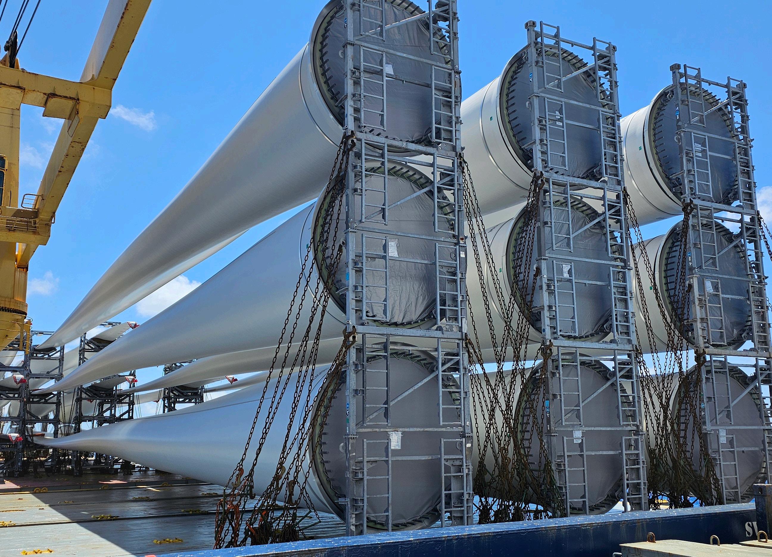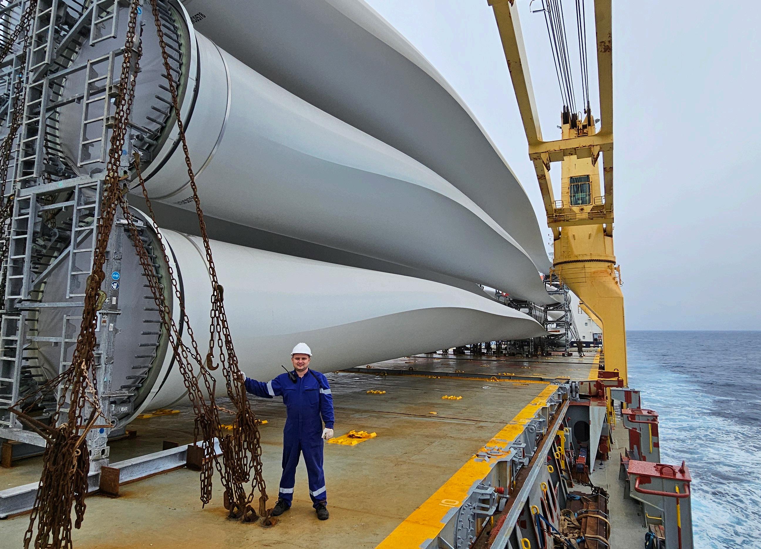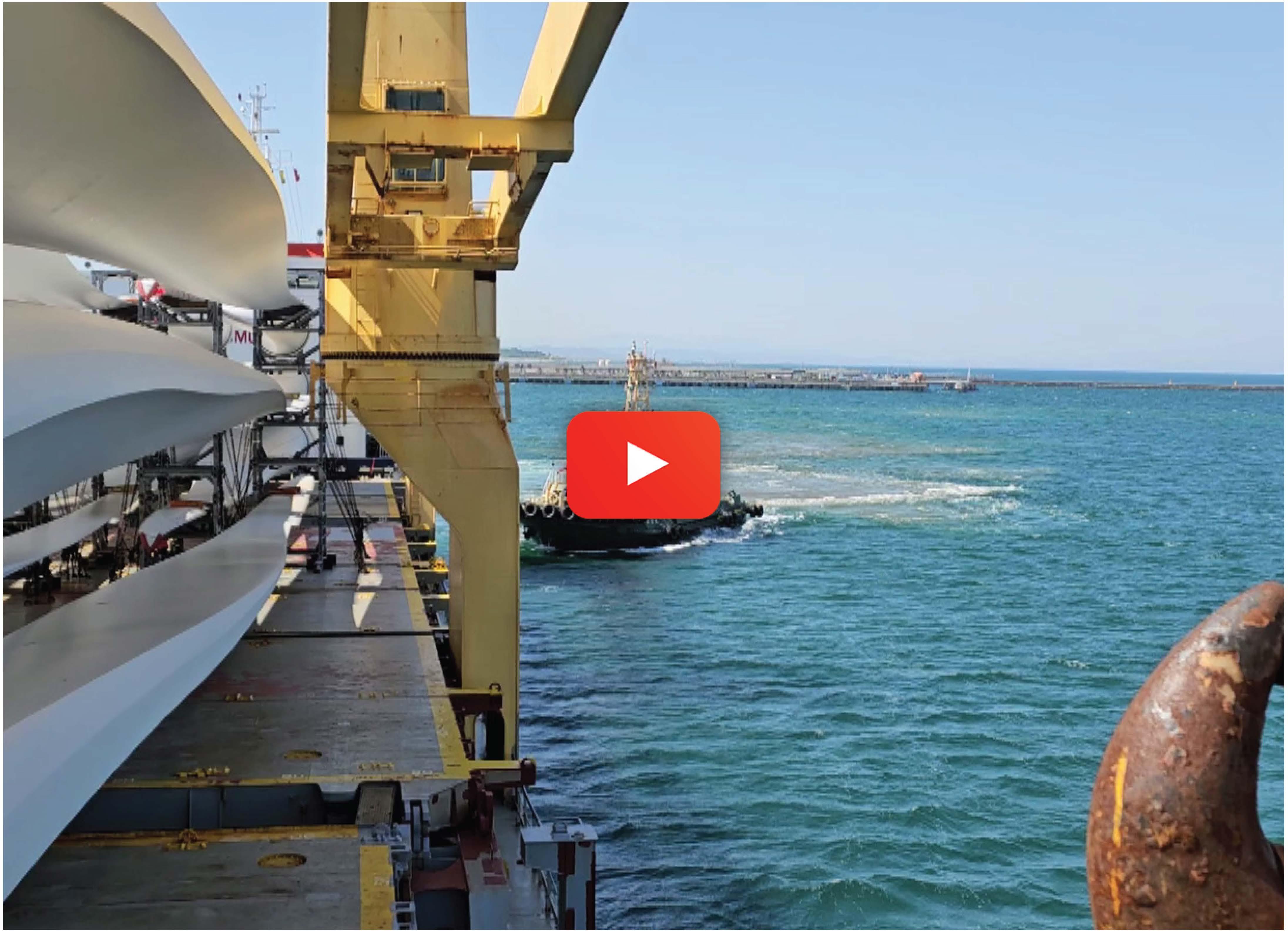 MV Atlantic Harmony Carrier: AAL Shipping Loading wind energy converters at Emden in January