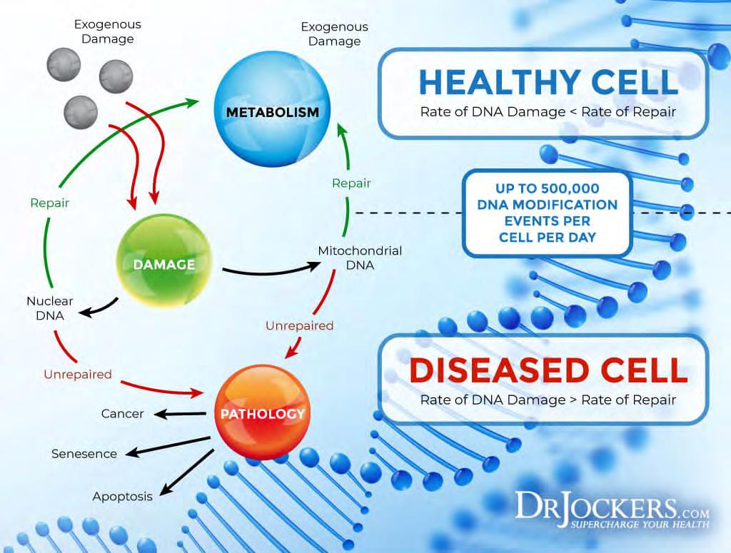 As an example, high levels of oxidative stress block the p53 gene that governs cellular apoptosis. When this happens, we can no longer regulate cell division and overtime we develop various cancer (7).
