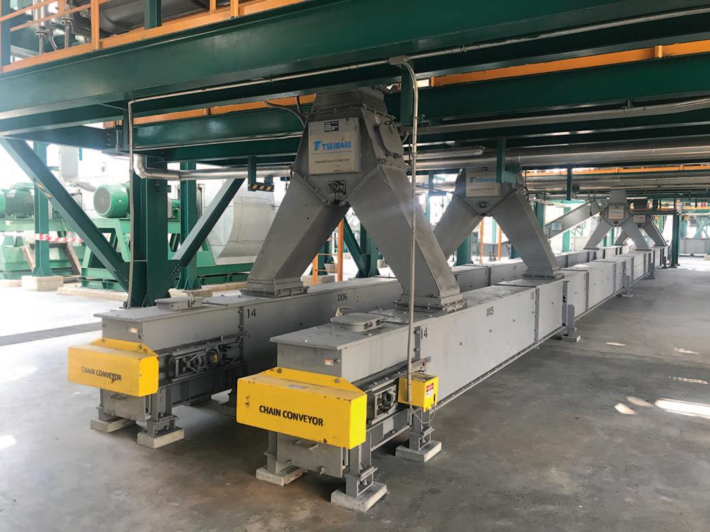 For example, for an oil extraction plant, Grain Capital’s engineering team developed and manufactured horizontal inclined chain conveyors with different inclination angles. The design also accounted for the aggressive properties of meal, which contains residual solvents and is corrosive to metal.