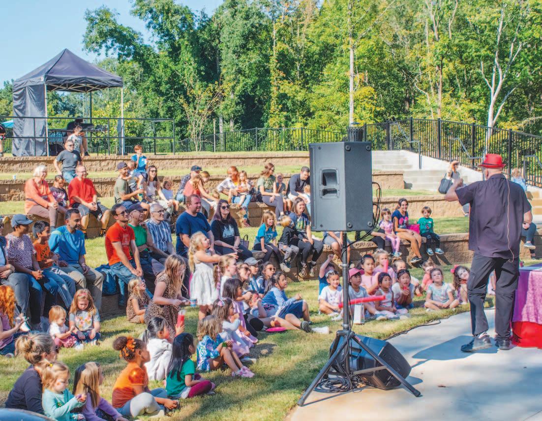 Those who love outdoor activities will find lots of fun when they visit the Downtown Park. The spacious amphitheater, pictured above, is the perfect setting for a variety of events throughout the year. While visiting the park, be sure to stop and admire the stunning sculpture titled “Spirit of Nature”. This art installment represents the Native American heritage of Waxhaw.