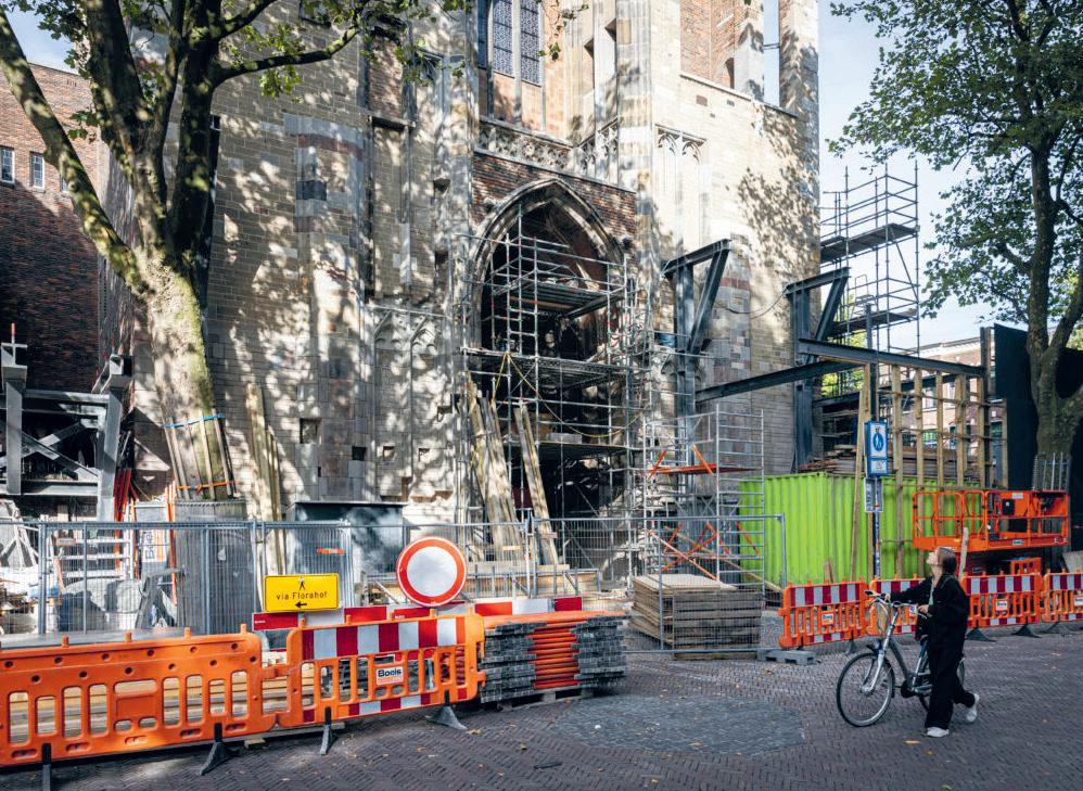 2017: Eerste steigers verrijzen rondom de top van de Domtoren