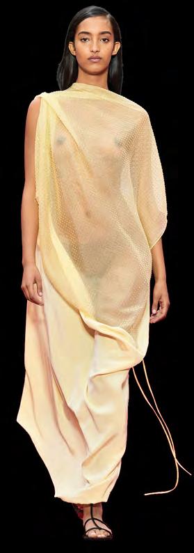 Dress, price upon request, PROENZA SCHOULER , proenzaschouler.com . 18k gold link earrings, $6,400, TIFFANY & CO., tiffany.com 14k gold and diamond ring, $1,400, 9k gold ring, $1,850, CAST, castjewelry.com . 18k gold, diamond and emerald snake coil ring, $4,350, ANITA KO, anitako.com