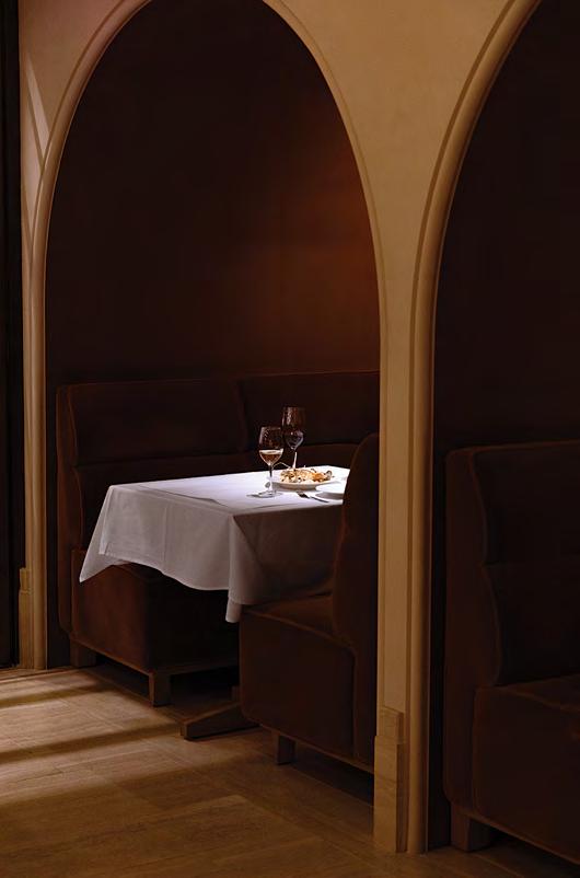 puttanesca and housemade pastas including bucatini cacio e pepe and spaghetti carbonara are all on offer. Designed by Fort Worth–based architecture firm Ibañez Shaw Architecture, the bar is characterized by a bright, sunny palette of materials and fabrics, while in the dining room the tone is set by oak paneling and darker upholstery. Hovering above the central banquettes is a series of rectangular sculptural elements composed of a reflective metallic fabric. 61osteria.com