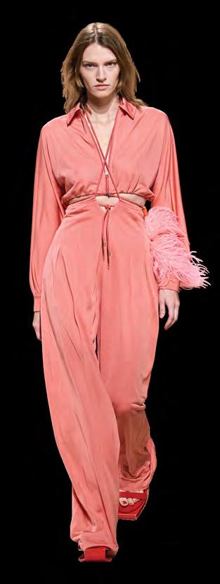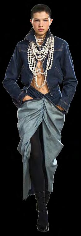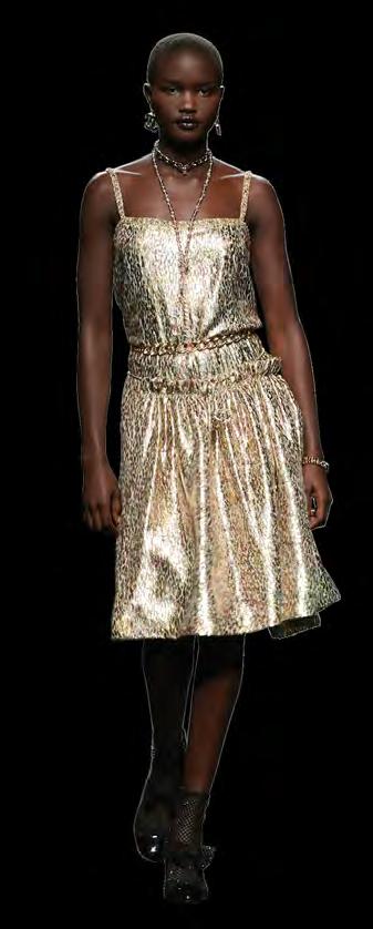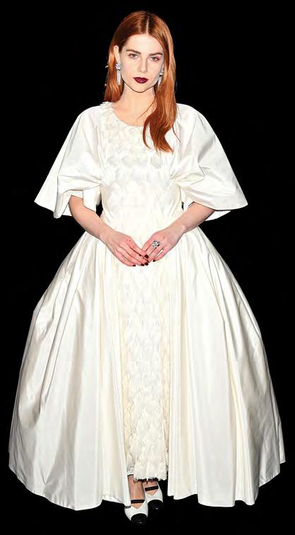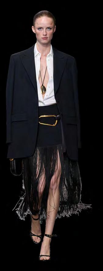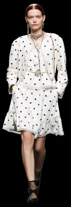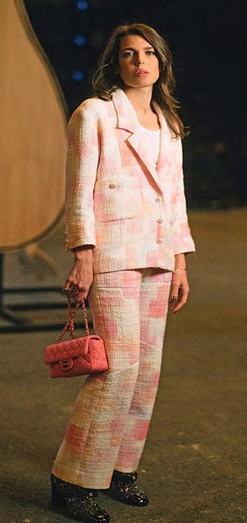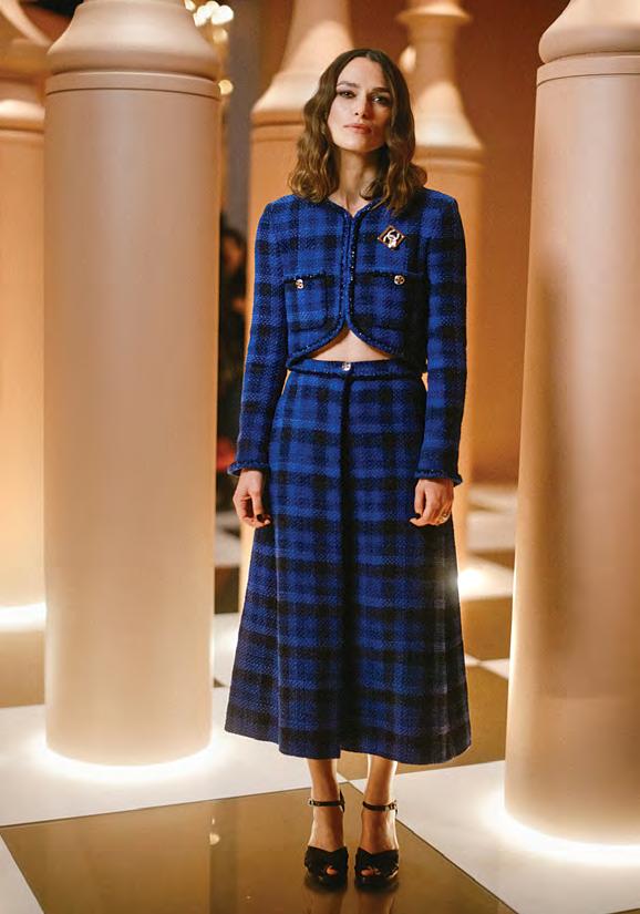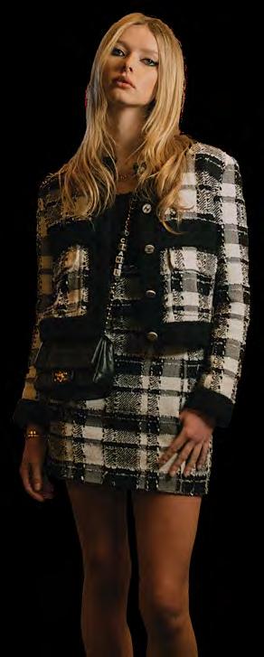 Jacket $1,950, top, $1,090, skirt, $1,090, shoes, $995, STELLA MCCARTNEY, stellamccartney.com . 18k rose gold chain necklace, $19,500, 18k rose gold and diamond ring, price upon request, CHOPARD, chopard.com