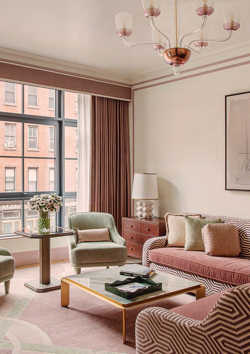 Blending Parisian panache with Tribeca cool, Hôtel Barrière Fouquet’s New York ’s 97 residential-style rooms and suites were designed by Martin Brudnizki. Onsite offerings include an outpost of the French brasserie Fouquet’s, Spa Diane Barrière, screening room and rooftop terrace. The Paris-meets-New York vibe is exemplified in the custom wallpaper lining the guest rooms, a lavender toile de jouy (an homage to the toile de jouy at Hotel Barrière Le Normandy in Deauville, the line’s flagship) printed with scenes of Tribeca. hotelsbarriere.com