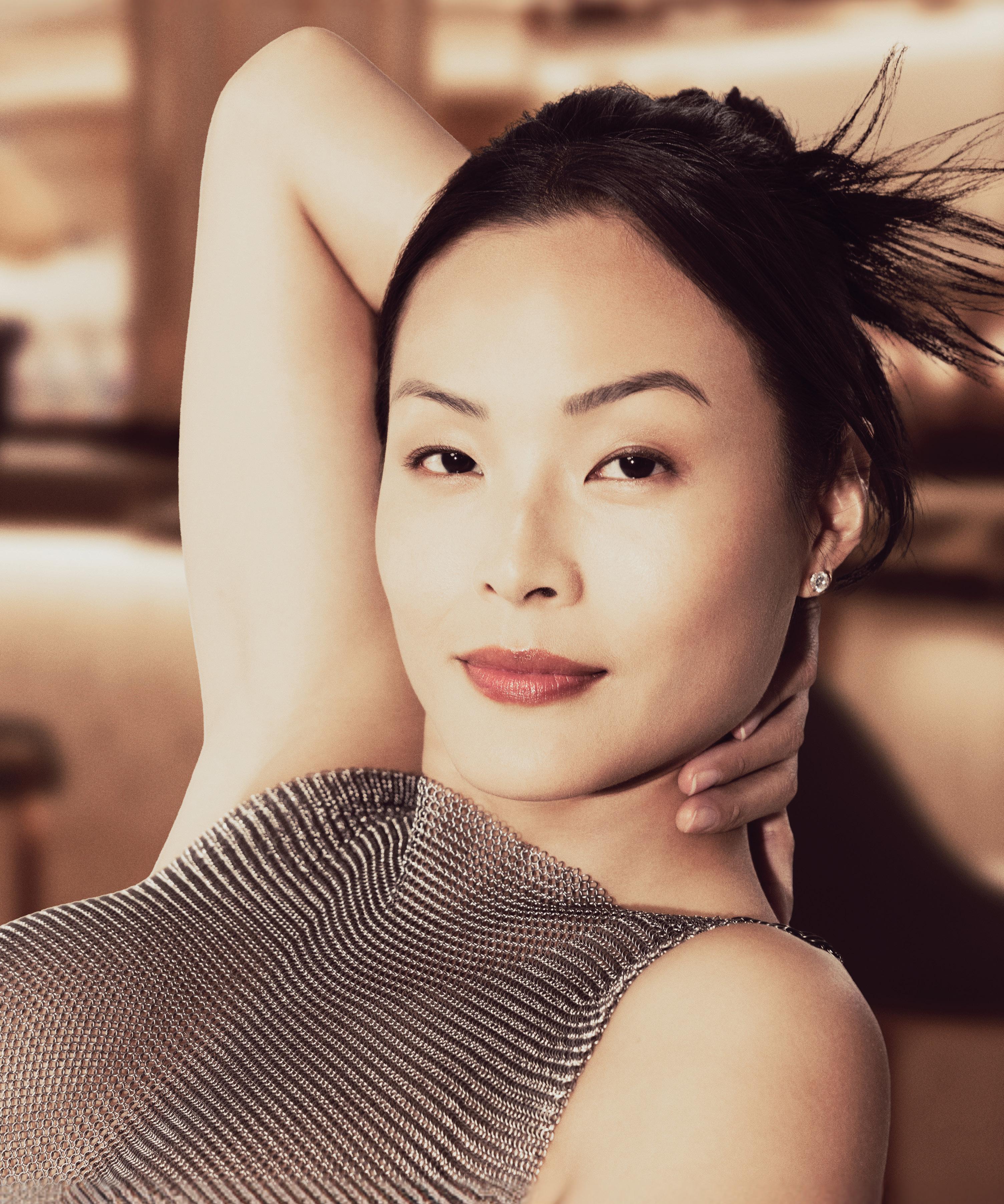 Michelle Yeoh, with a Roger Vivier bag, at the Roger Vivier presentation in Paris