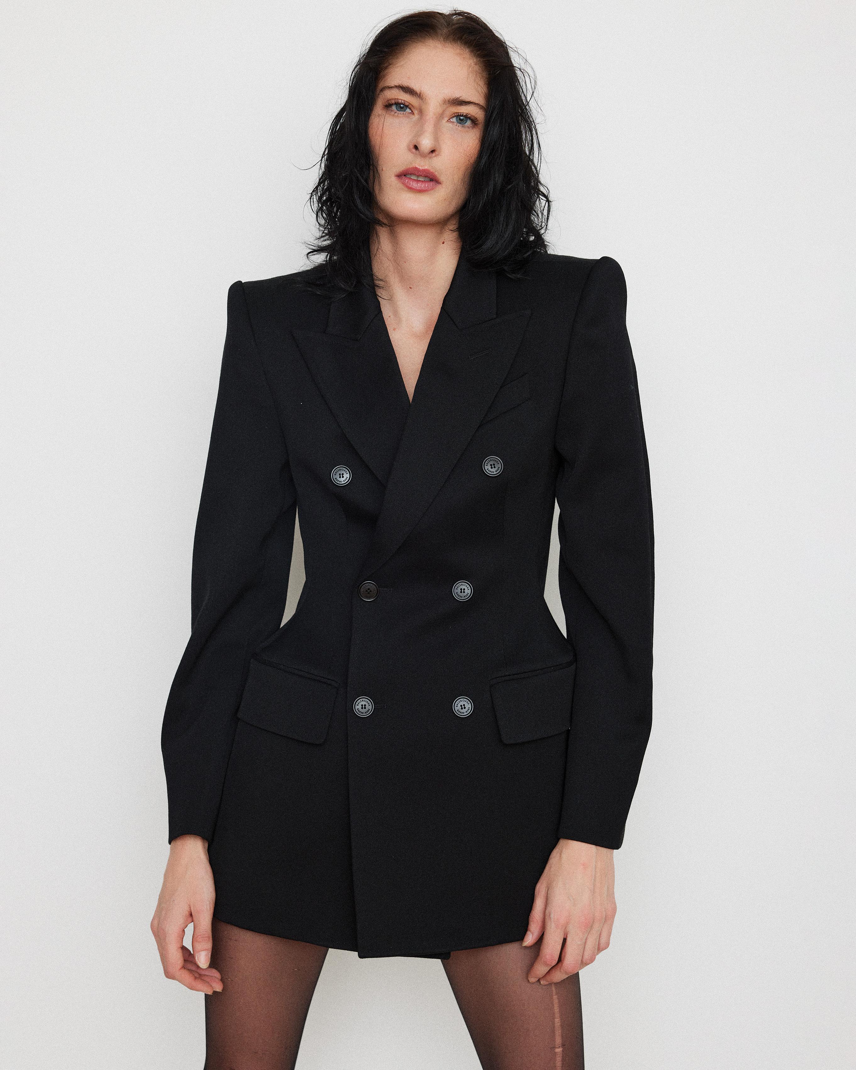 Amber Valetta, in Balenciaga, at the Balenciaga show in Paris