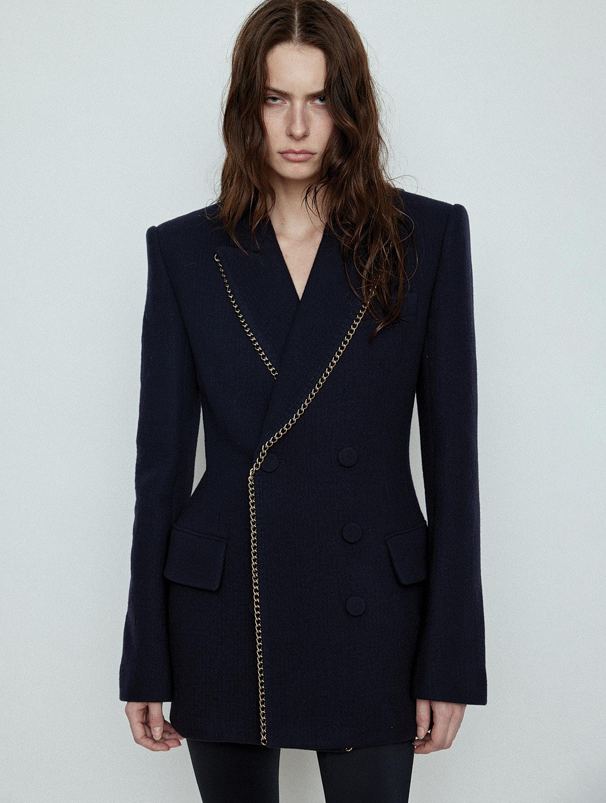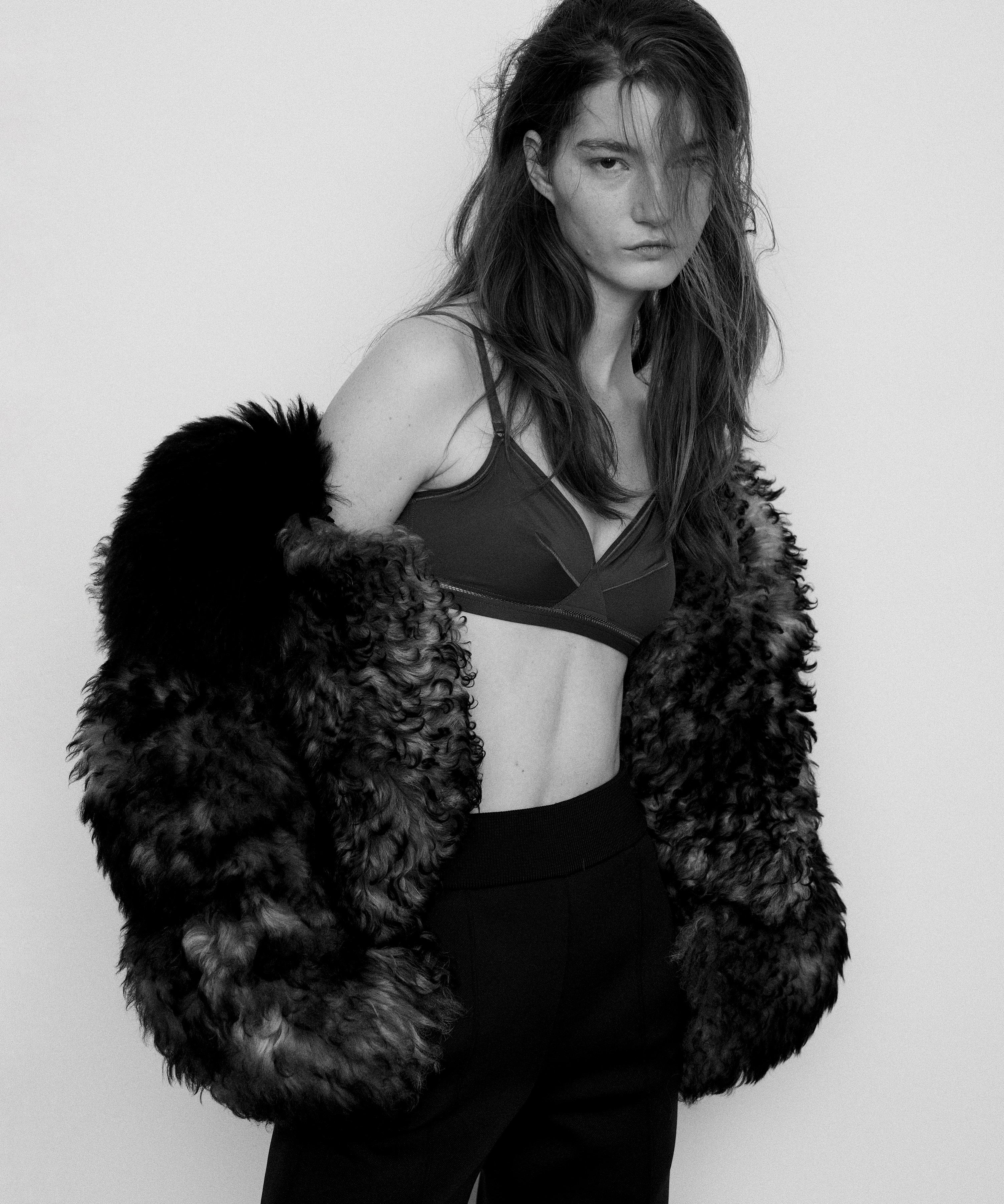 Coat, price upon request, MAX MARA , maxmara.com . Vest, $308, BEVZA , bevza.com . Shirt, $450, 3.1 PHILLIP LIM, 31philliplim.com . Nudo ring in 18k white gold with milky quartz and diamonds, $3,200, POMELLATO, pomellato.com