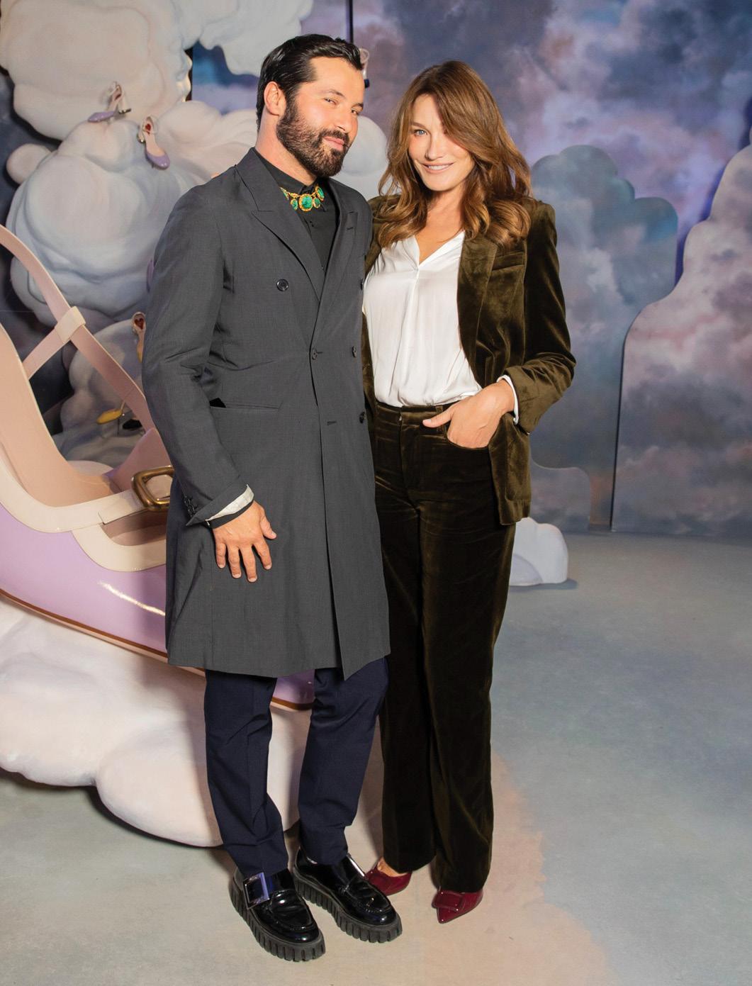 Gherardo Felloni and Carla Bruni, in Roger Vivier shoes, at the Roger Vivier presentation in Paris