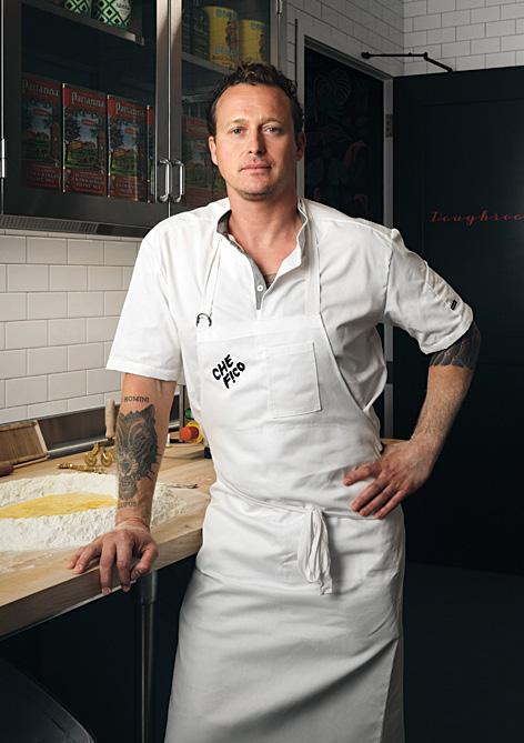 Al fresco dining at Che Fico Parco Menlo; a selection of antipasti, chef/co-owner David Nayfeld; the Che Fico chopped salad