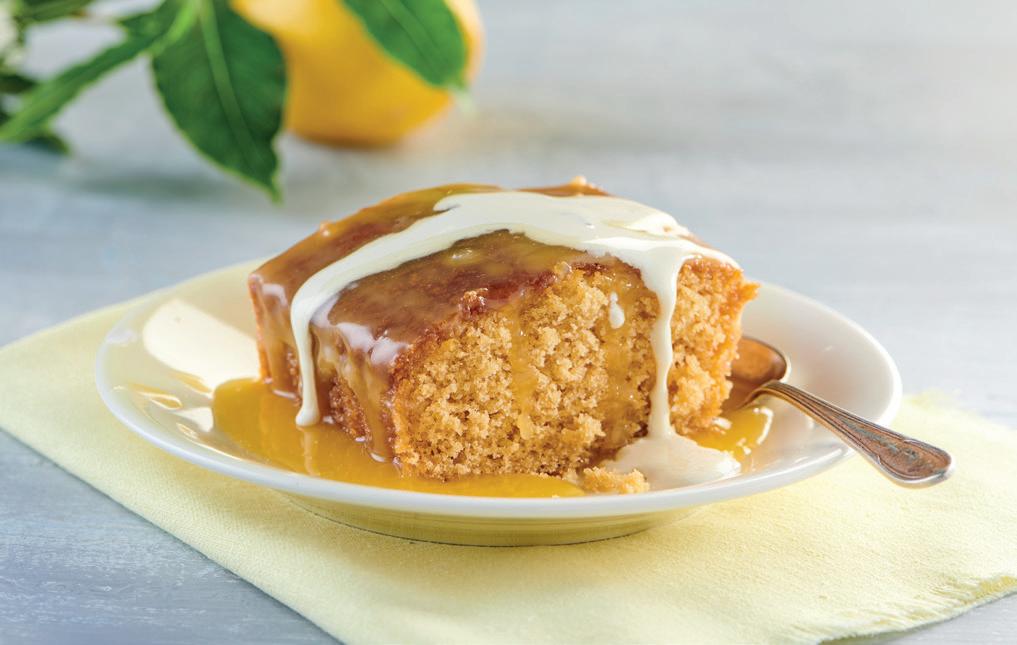 A light lemon sponge topped with a fresh lemon sauce. Made by hand in small batches using butter and free range eggs.