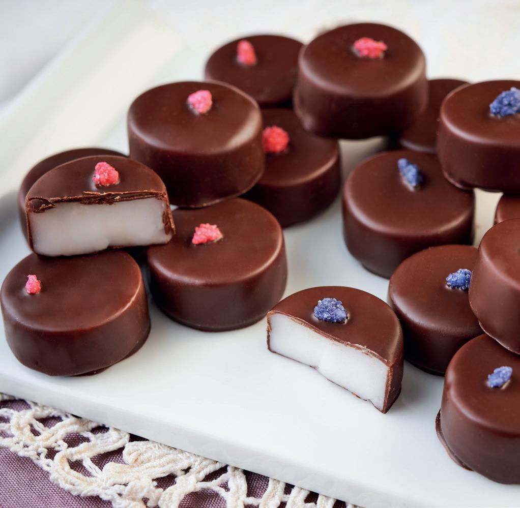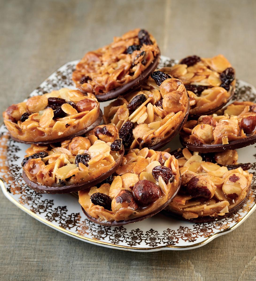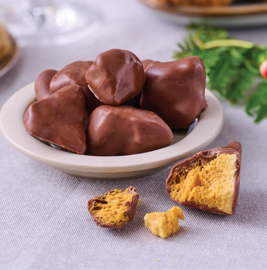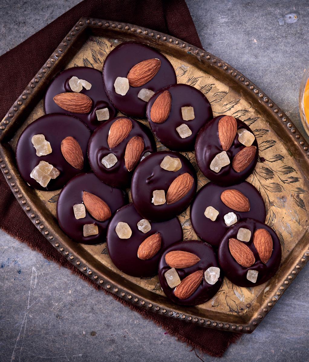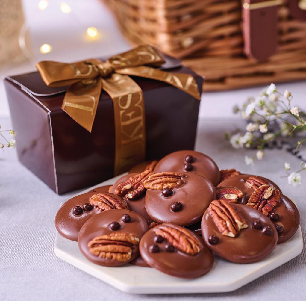 • Gingerbread Blonde Chocolate Bar (65g) • Milk Chocolate, Crunchy Biscuit & Caramelised Pecan Mendiants (100g)