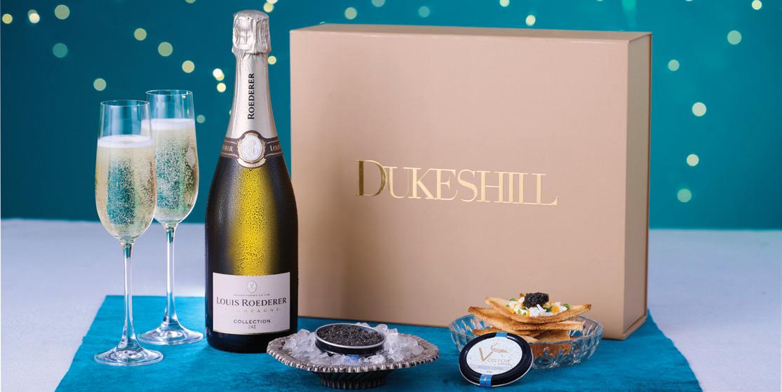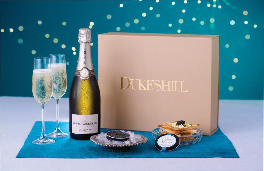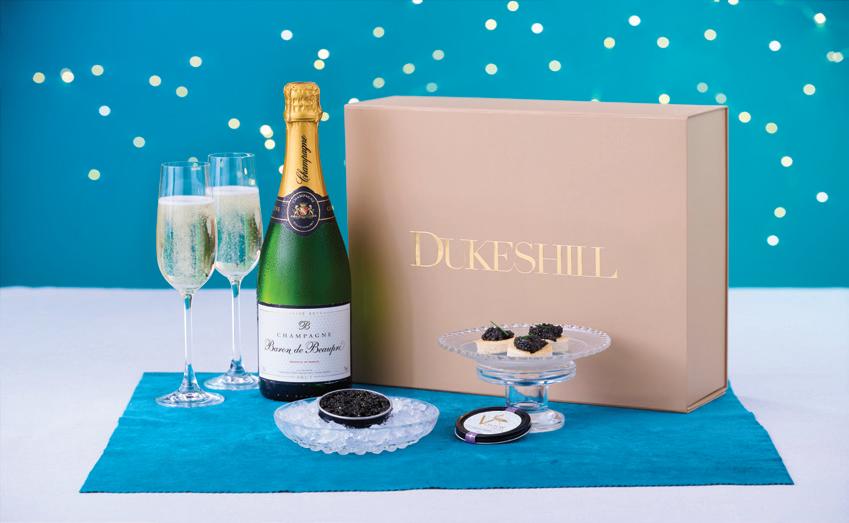La Grande Marque Saumur Brut (75cl) • Cocktail Nuts (170g) • Parmesan & Chilli Sablés (120g) • Chorizo Jam (198g) • Pork Rillettes with Espelette Pepper (180g) • Stilton & Almond Sablés (120g) • Cornish Sea Salt Thins (120g) Fizz & Nibbles 7 Items • Gift Box XHBLRC Beluga Caviar & Louis Roederer Brut Premier Champagne £280 XHBBBC Royal Baerri Caviar & Baron de Beaupré Champagne Brut £105 XHBSSF Smoked Salmon & Fizz £40XHBCTF Marc de Champagne Truffles & Fizz £45 Marc de Champagne Truffles (200g) Rose Vino Frizzante, Fabio Ceschin, Veneto, Italy (75cl) Marc de Champagne Truffles & Fizz 2 Items • Gift Box Oak Smoked Salmon (200g) La Grande Marque Saumur Brut (75cl) Smoked Salmon & Fizz 2 Items • Gift Box Beluga Caviar (50g) Louis Roederer Brut Premier, Champagne (75cl) Beluga Caviar & Louis Roederer Brut Premier Champagne 2 Items • Gift Box Royal Baerii Caviar (50g) Baron de Beaupré Champagne Brut (75cl) Royal Baerri Caviar & Baron de Beaupré Champagne Brut 2 Items • Gift Box XHBFN Fizz & Nibbles £55 Gingerbread Blonde Chocolate (65g) • Milk Chocolate, Crunchy Biscuit & Caramelised Pecan Mendiants (100g) • Handmade Scottish Shortbread (9 pieces) • Milk Chocolate Honeycomb (125g) • Panettone (100g) Sugar Plum 5Items • Gift Box XHBSB Sugar Plum £35 Requires refrigeration on delivery. Requires refrigeration on delivery. Requires refrigeration on delivery. Online: dukeshillham.co.uk | Orderline: 0345 3700 129 | Helpline: 0345 222 0153 97
