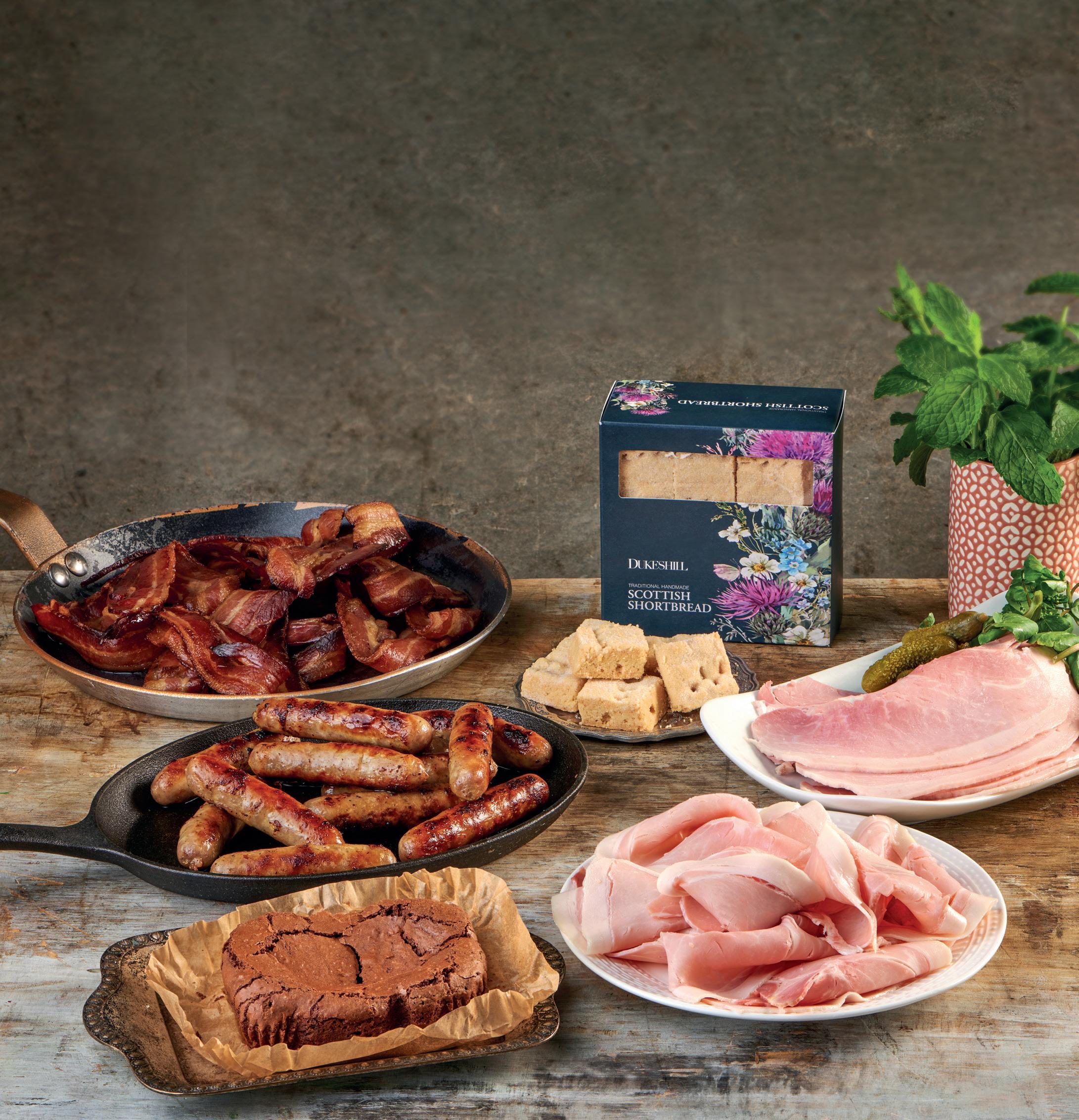 We invite you to browse our wonderful brochure, where you will find page after page of inspiring ideas for the most delicious Christmas. Everything from the most exceptional festive roast centrepieces to the smallest cocktail sausages, traditionally smoked salmon and artisan cheeses, handmade pies, puddings, and cakes, and of course, our wonderful array of expertly curated hampers and luxury gift boxes, filled to the brim with the finest artisan food.