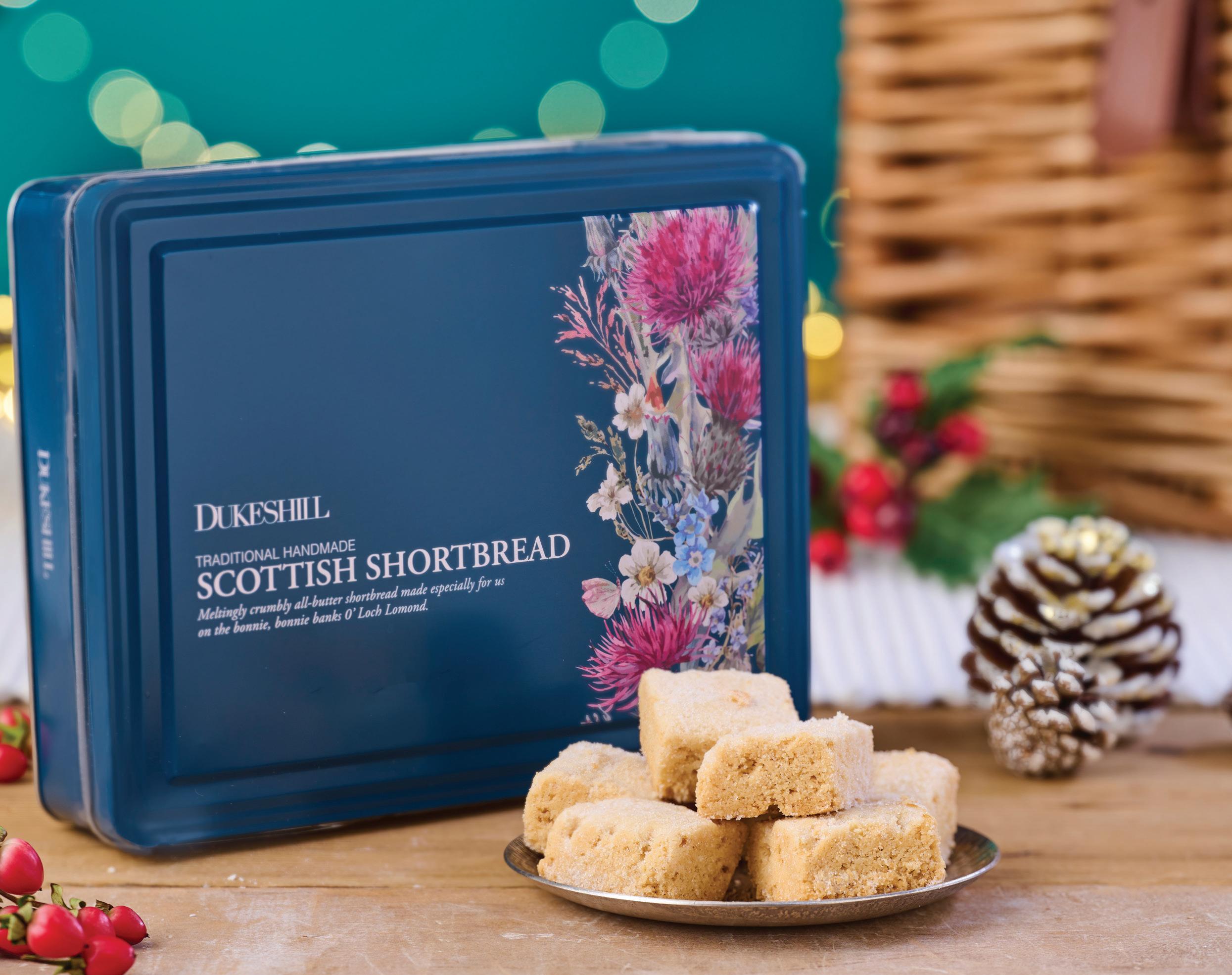 Fig Chutney (198g) • Parmesan & Pistachio Sablés (120g) • Scottish Oatcakes (200g) SWEET: Handmade Scottish Shortbread (475g) • Panettone (100g) • Dark Chocolate Malt Balls (150g)