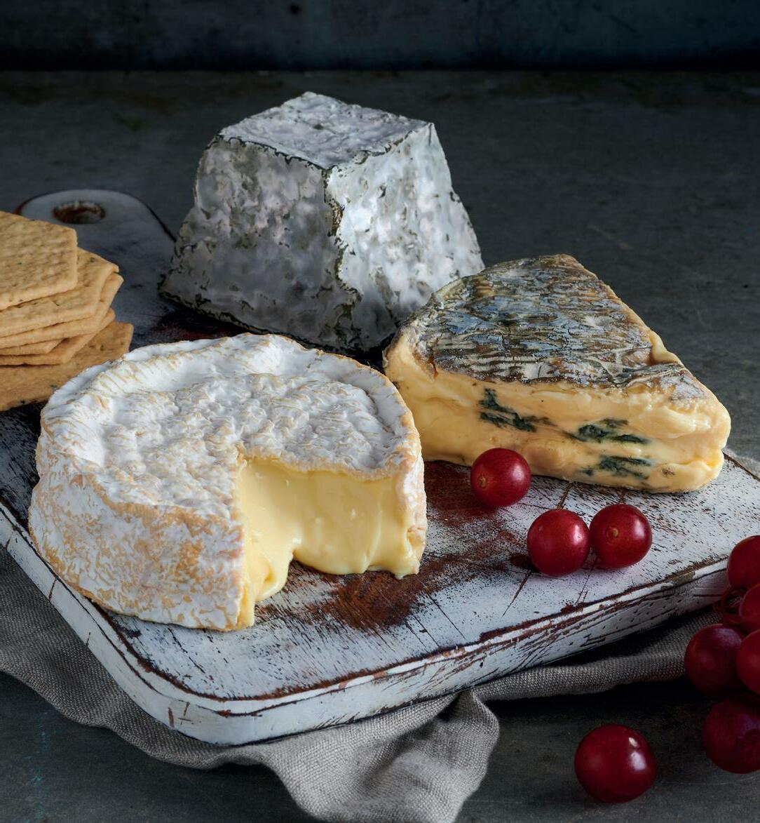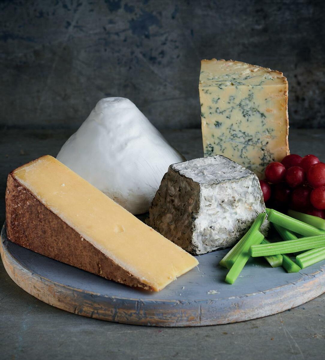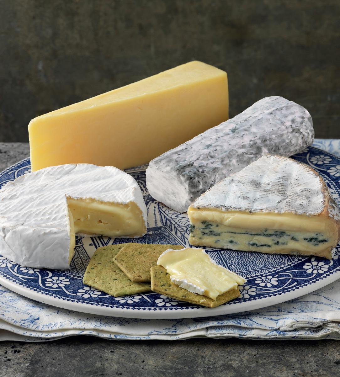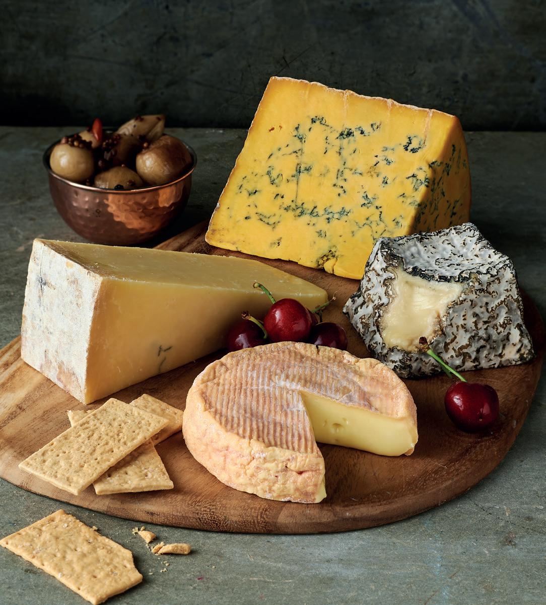 9 Items • 14” Wicker Basket with Leather Straps • Isle of Mull Cheddar (200g) • Baron Bigod (250g) • Ragstone (200g) • Cote Hill Blue (330g) • Damson Fruit Cheese (125g) • Laura’s Apple & Sultana Chutney (198g) • Cornish Sea Salt Thins (120g) • Cracked Black Pepper Crackers (100g) • Parmesan & Pistachio
