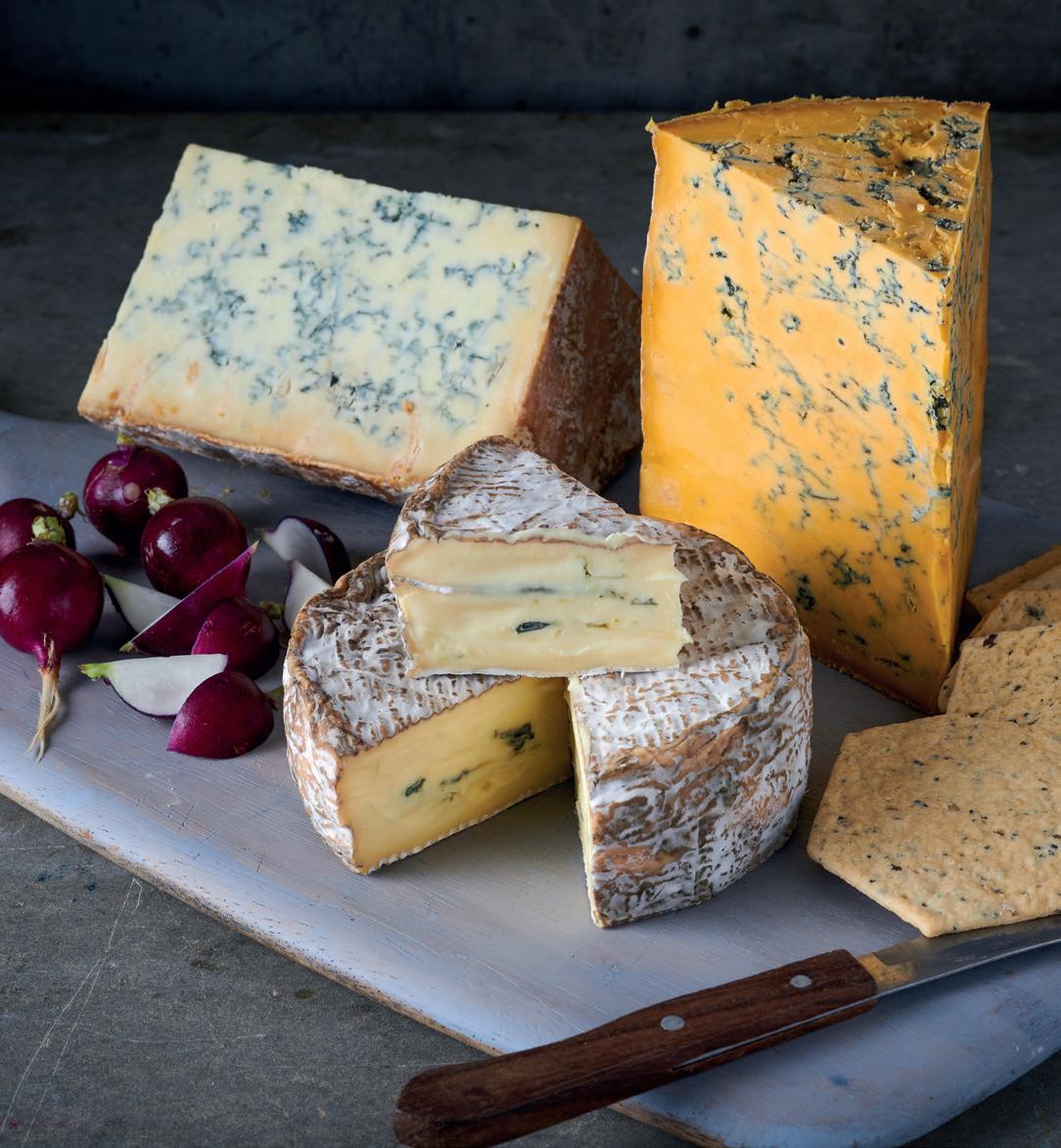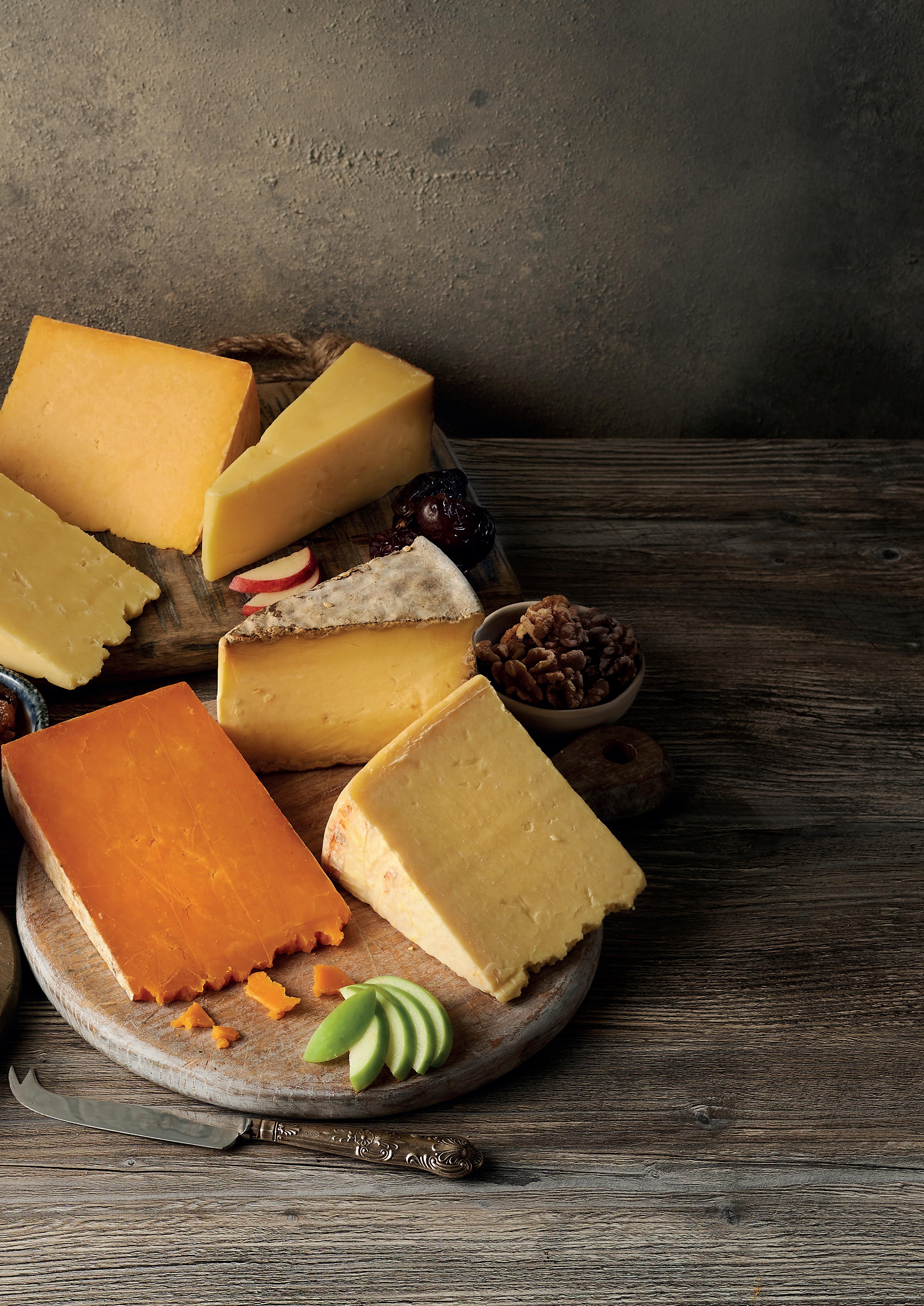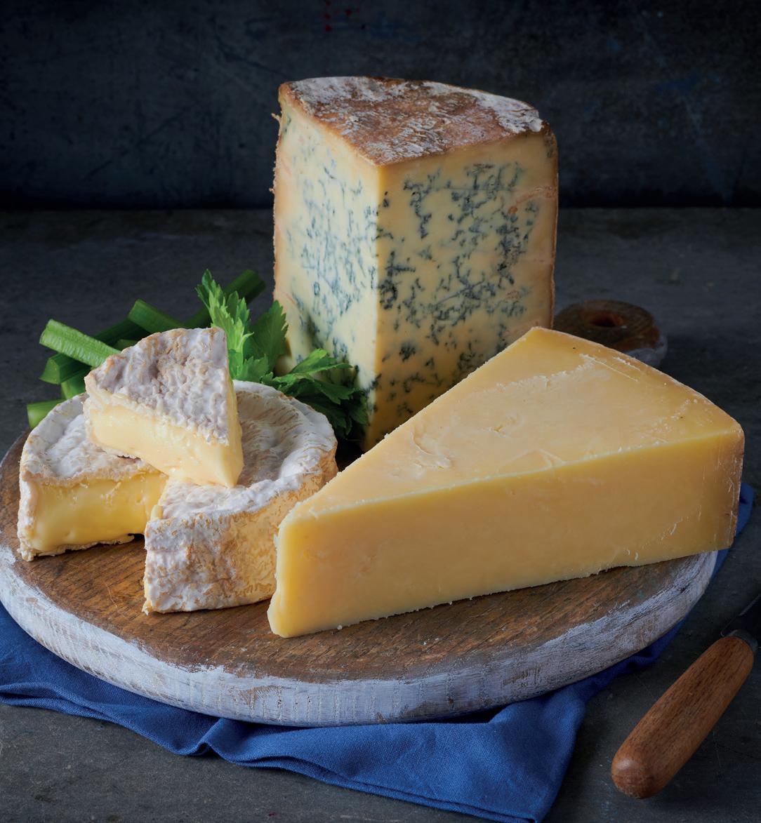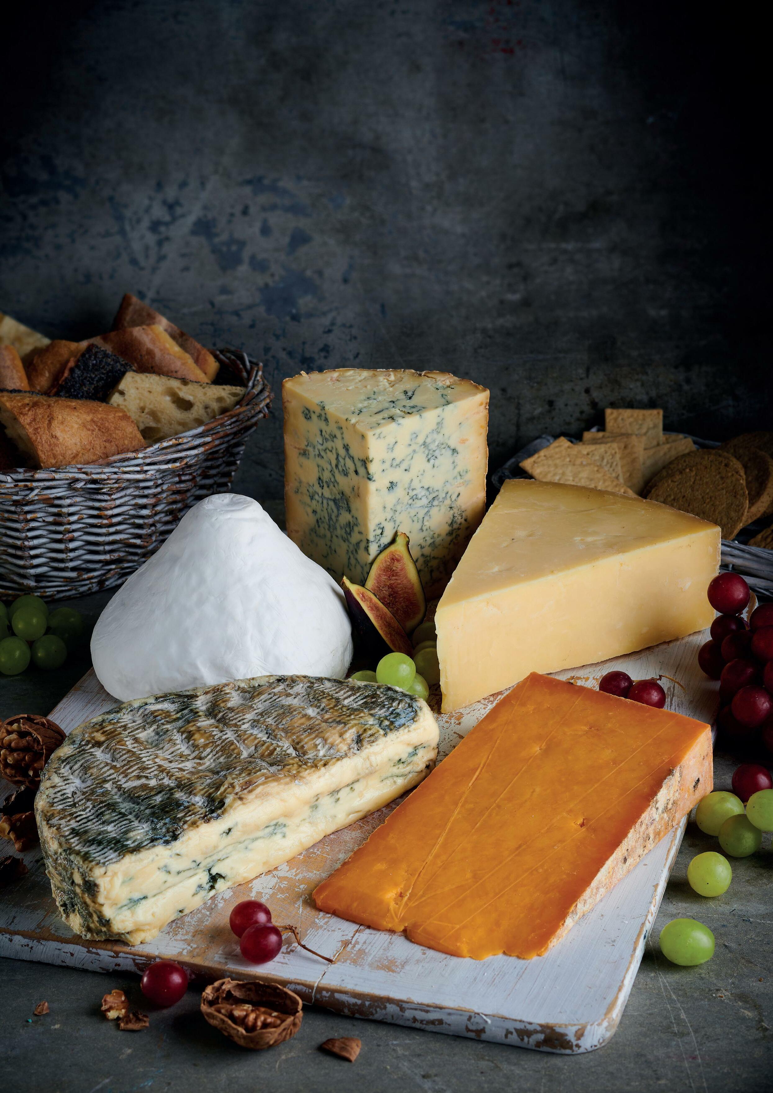 9 Items • 14” Wicker Basket with Leather Straps • Isle of Mull Cheddar (200g) • Baron Bigod (250g) • Ragstone (200g) • Cote Hill Blue (330g) • Damson Fruit Cheese (125g) • Laura’s Apple & Sultana Chutney (198g) • Cornish Sea Salt Thins (120g) • Cracked Black Pepper Crackers (100g) • Parmesan & Pistachio