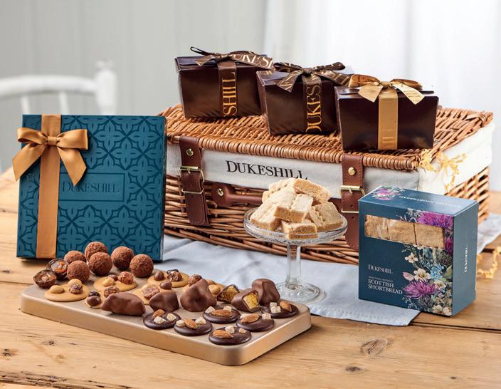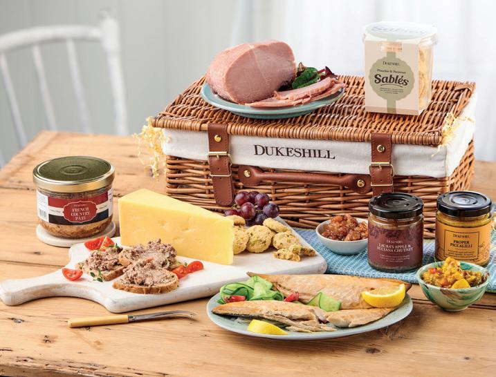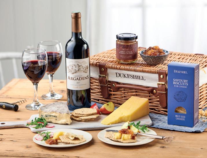 Post via Royal Mail. VCH025 £25 Gift Voucher £25 VCH050 £50 Gift Voucher £50 VCH100 £100 Gift Voucher £100 Gift Vouchers Sweet Delights Hamper 5 Items • 14” Wicker Basket with Leather Straps • Milk Chocolate Covered Honeycomb (125g) • Handmade Scottish Shortbread (300g) • Dark Chocolate, Roasted Almonds & Ginger Mendiants (150g) • Blonde Chocolate, Coffee and Caramelised Hazelnut Mendiants (150g) • Dark Chocolate Salted Caramels (200g, 16 chocolates) XHWSWH £75 Wine & Cheese Hamper 6 Items • 14” Wicker Basket with Leather Straps SAVOURY: Isle of Mull Cheddar (200g) • Cote Hill Blue Cheese (170g) • Multi Seed Crackers (100g) • Laura’s Apple & Sultana Chutney (198g) ALCOHOL: Chateau Argadens Bordeaux, France (75cl) XHWWC £65 Requires refrigeration on delivery. Requires refrigeration on delivery.Requires refrigeration on delivery. Online: dukeshillham.co.uk | Orderline: 0345 3700 129 | Helpline: 0345 222 0153 95