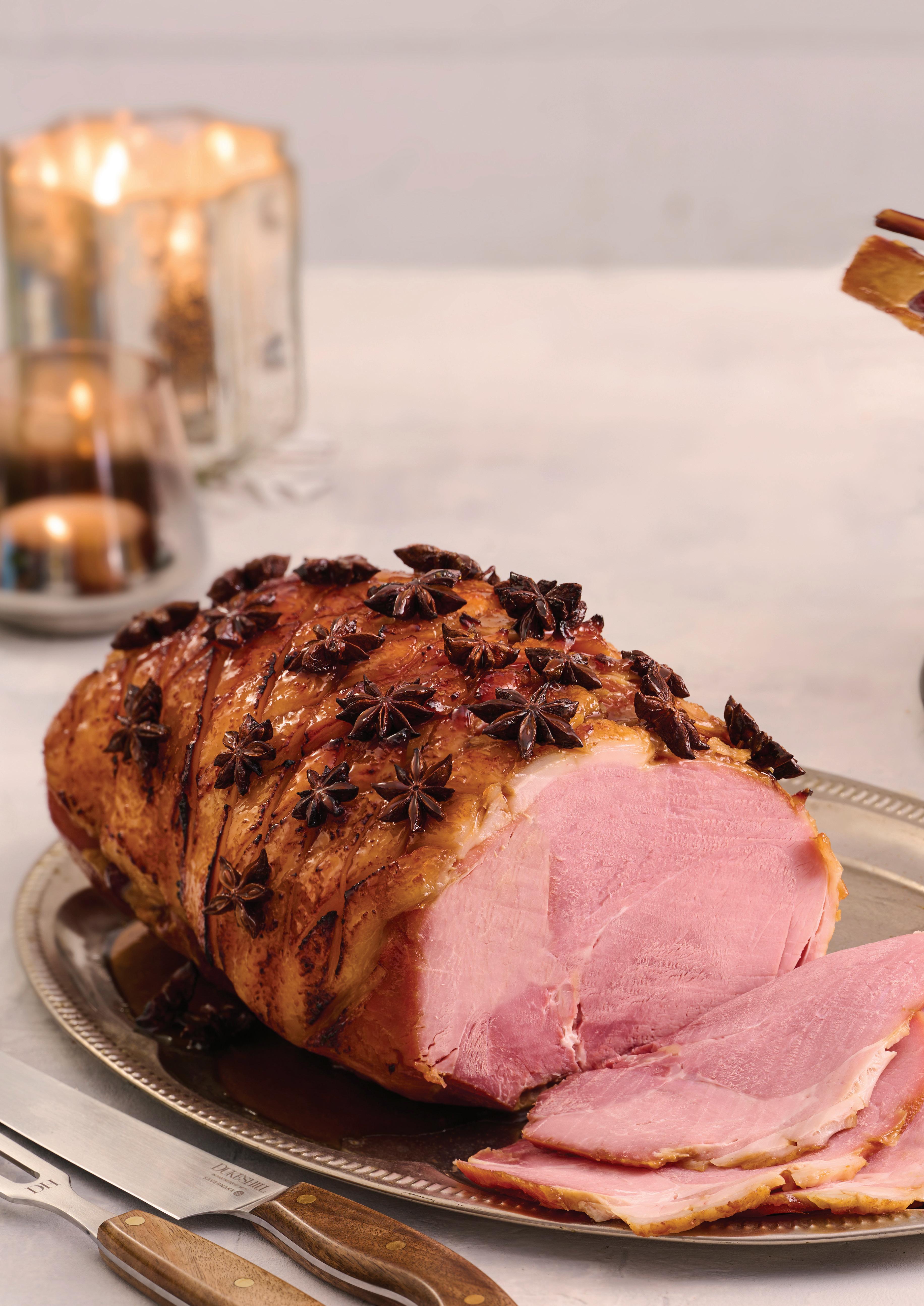 We’ve decorated the hams on this page with a lovely Christmas glaze and star anise. See our recipes for glazed hams online at www.dukeshillham.co.uk/recipes Online: dukeshillham.co.uk | Orderline: 0345 3700 129 | Helpline: 0345 222 0153 7