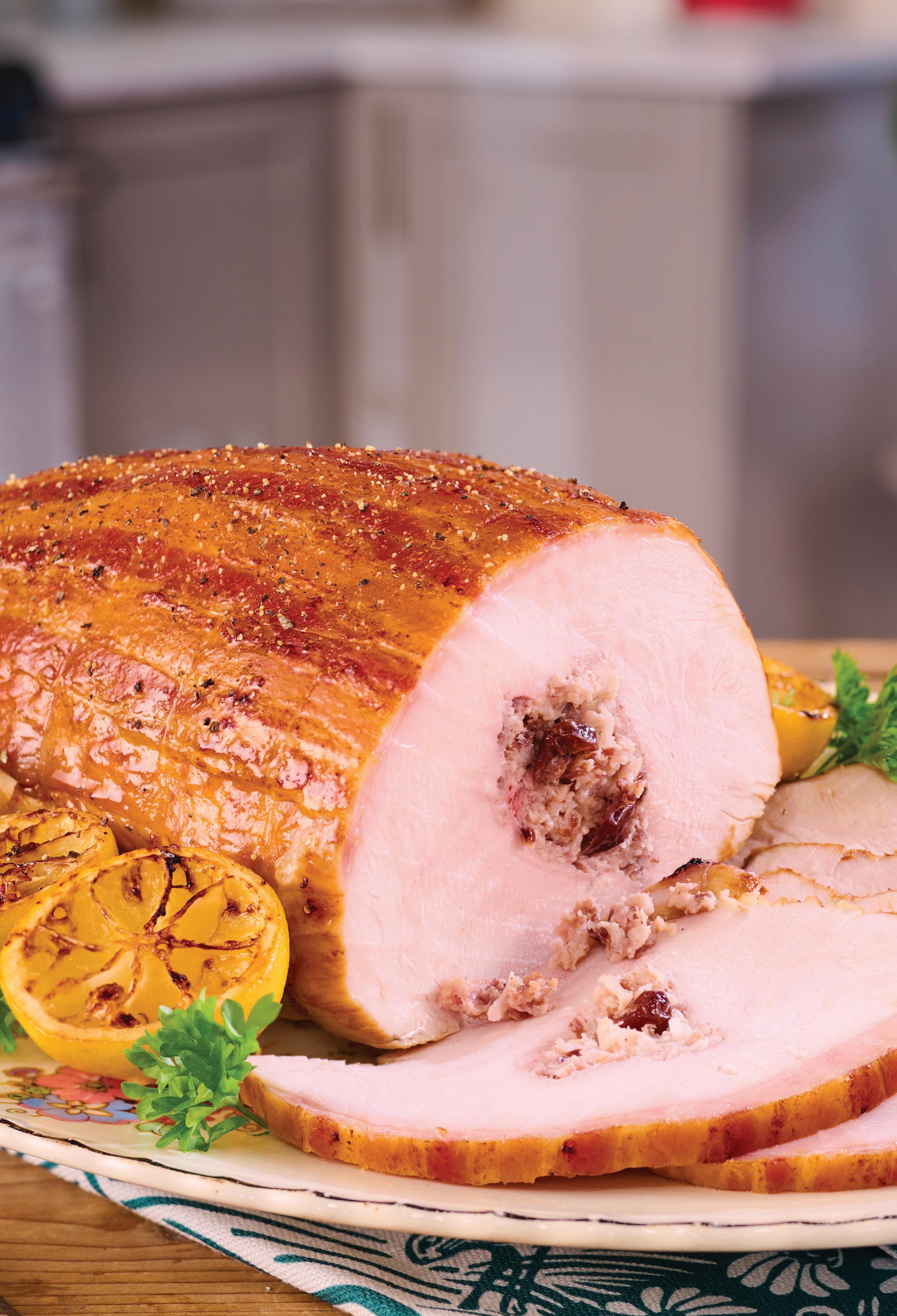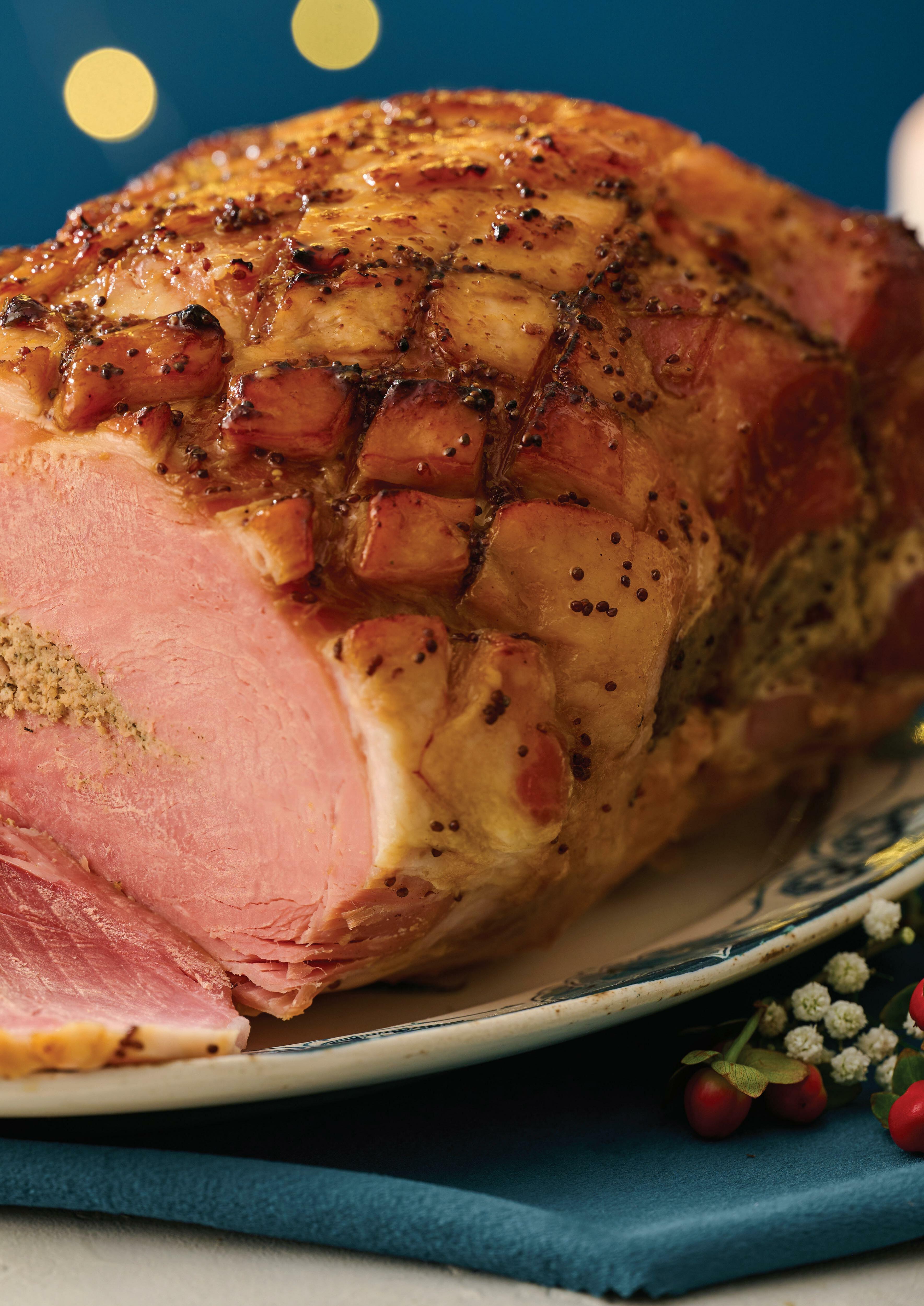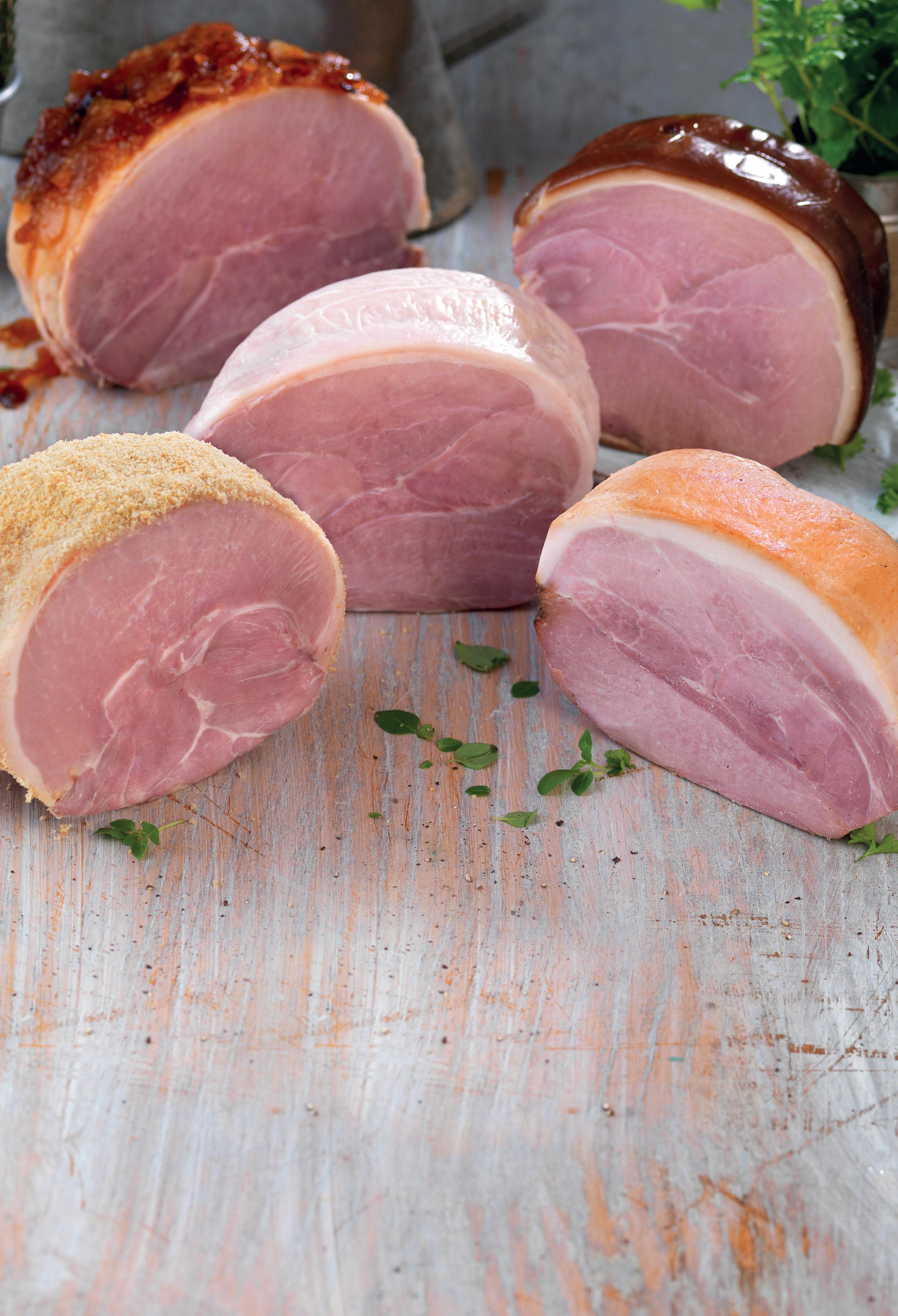The photographs throughout this brochure show serving suggestions. As you will see, we show our hams decorated in various ways. Unless specifically stated otherwise, your ham will arrive unglazed and ready for you to dress with breadcrumbs (not supplied) or glaze as you prefer.