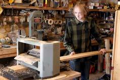 Cody Crisel cuts a board that will be made into a stool at Labrador Woodworking in Cloquet on Feb. 5.