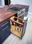 There's lots of storage in the Heikens' new kitchen, especially in the large pantry-like cabinet with easy pull-out shelves, located next to the refrigerator.
