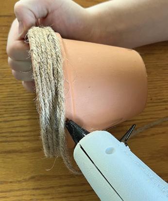 If you don’t want to use hot glue, try fastening it by tying the ends into a knot and securing it in place. When using a jute cord instead of a bandana, wrap the cord around the top inch of the pot, applying hot glue as you go. For either the bandana or jute cord, hot glue isn’t needed on the entire piece, simply place a dab as you go along every inch or so.